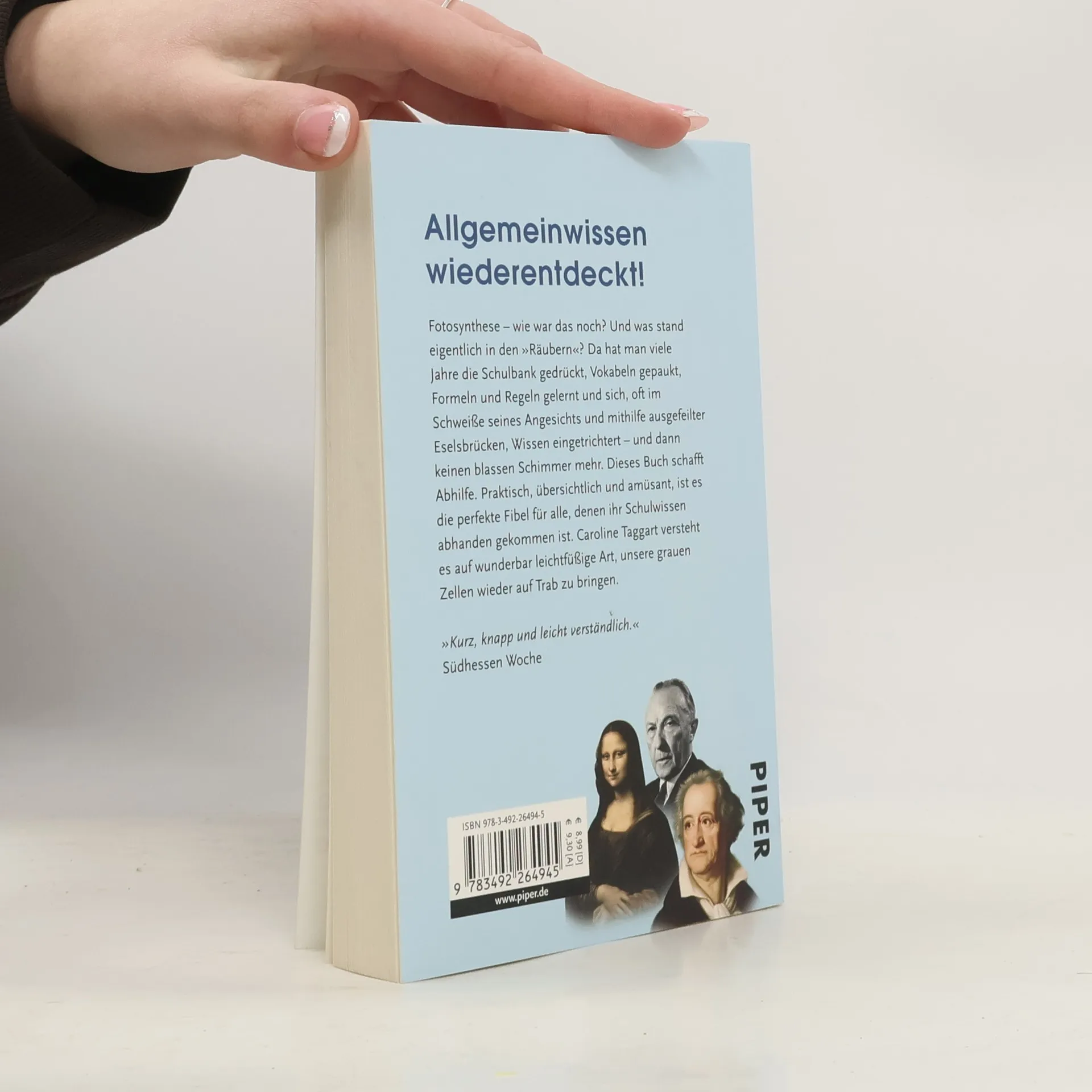 Fotosynthese – wie war das noch? Und was stand eigentlich in den 'Räubern'? Da hat man viele Jahre die Schulbank gedrückt, Vokabeln gepaukt, Formeln und Regeln gelernt und sich, oft im Schweiße seines Angesichts und mithilfe ausgefeilter Eselsbrücken, Wissen eingetrichtert – und dann keinen blassen Schimmer mehr. Dieses Buch schafft Abhilfe. Praktisch, übersichtlich und amüsant, ist es die perfekte Fibel für alle, denen ihr Schulwissen abhanden gekommen ist. Caroline Taggart versteht es auf wunderbar leichtfüßige Art, unsere grauen Zellen wieder auf Trab zu bringen.