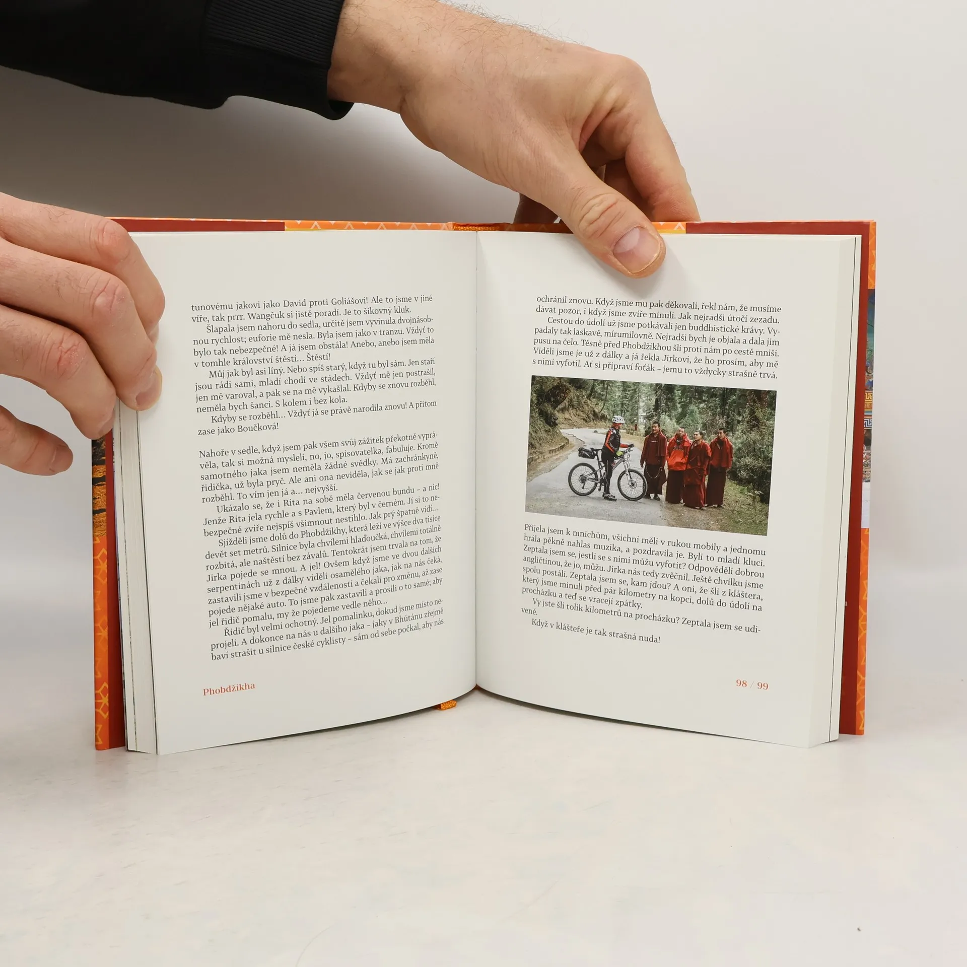Krajina a příroda vypadaly na internetu nedotčeně, průzračně, nádherně, mimo veškeré kategorie. Ihned jsem zatoužila ještě jednou, naposledy, překonat sebe sama, své strachy z létání, výšek, z neznámého, ze své kondice a věku – a jet. Napsala jsem do práce muži, který strachy jako já netrpí: Jedeme do Bhútánu! Jedeme? Napsal obratem: Jedeme! Číslo osm symbolizuje v asijské kultuře štěstí. Proto se nás v pondělí čtvrtého listopadu 2019 sešlo na letišti Václava Havla osm cyklistů. Že k sobě patříme, bylo jasné už na dálku. Prozradily nás obrovské krabice s koly, které jsme před sebou tlačili na vozíku… Putování po zemi hřmícího draka, hor, klášterů a všemocných penisů, cesta po království štěstí, jak se taky Bhútánu říká, začala. Ještě jsem nevěděla, že krajina a příroda, ale i lidé tam jsou opravdu mimo veškeré kategorie a že z toho bude láska na první pohled.