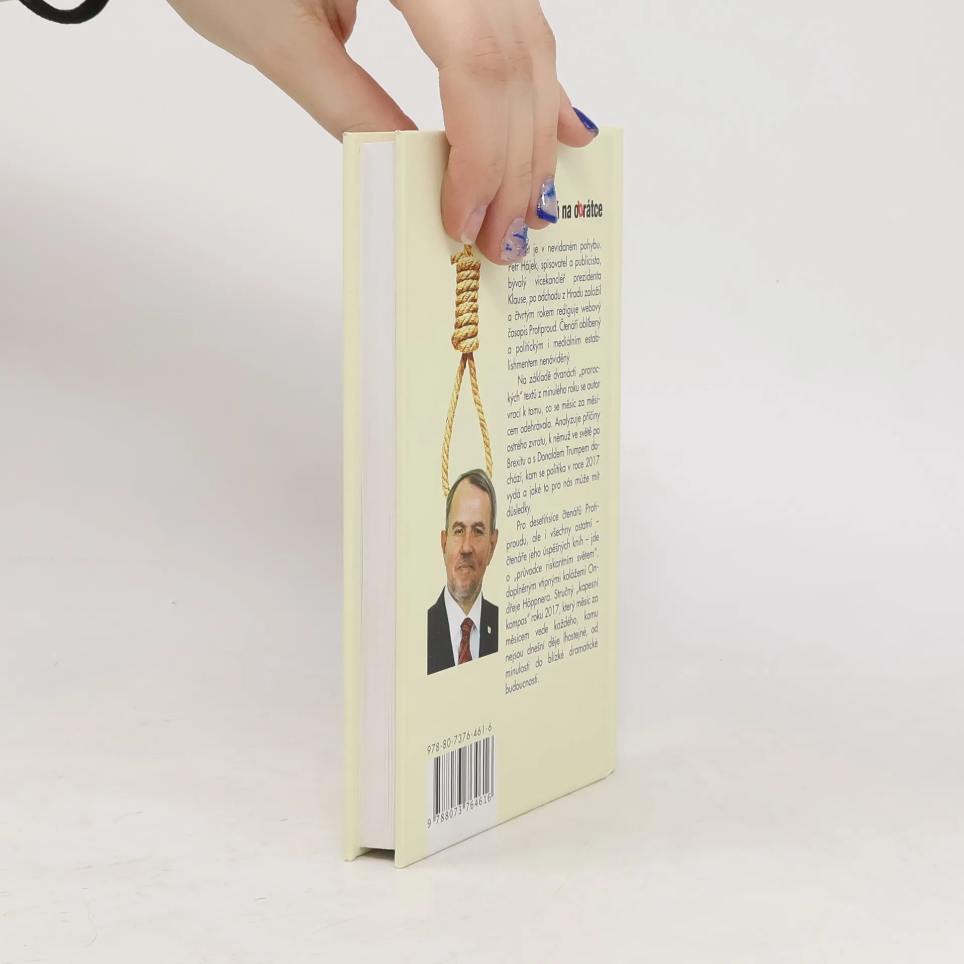 Svět je v nevídaném pohybu. Petr Hájek, spisovatel a publicista, bývalý vicekancléř prezidenta Klause, po odchodu z Hradu založil a čtvrtým rokem rediguje webový časopis Protiproud. Čtenáři oblíbený a politickým i mediálním establishmentem nenáviděný. Na základě dvanácti „prorockých“ textů z minulého roku se autor vrací k tomu, co se měsíc za měsícem odehrávalo. Analyzuje příčiny ostrého zvratu, k němuž ve světě po Brexitu a s Donaldem Trumpem dochází, kam se politika v roce 2017 vydá a jaké to pro nás může mít důsledky. Pro desetitisíce čtenářů Protiproudu, ale i všechny ostatní – čtenáře jeho úspěšných knih – jde o „průvodce riskantním světem“, doplněným vtipnými kolážemi Ondřeje Höppnera. Stručný „kapesní kompas“ roku 2017, který měsíc za měsícem vede každého, komu nejsou dnešní děje lhostejné, od minulosti do blízké dramatické budoucnost.