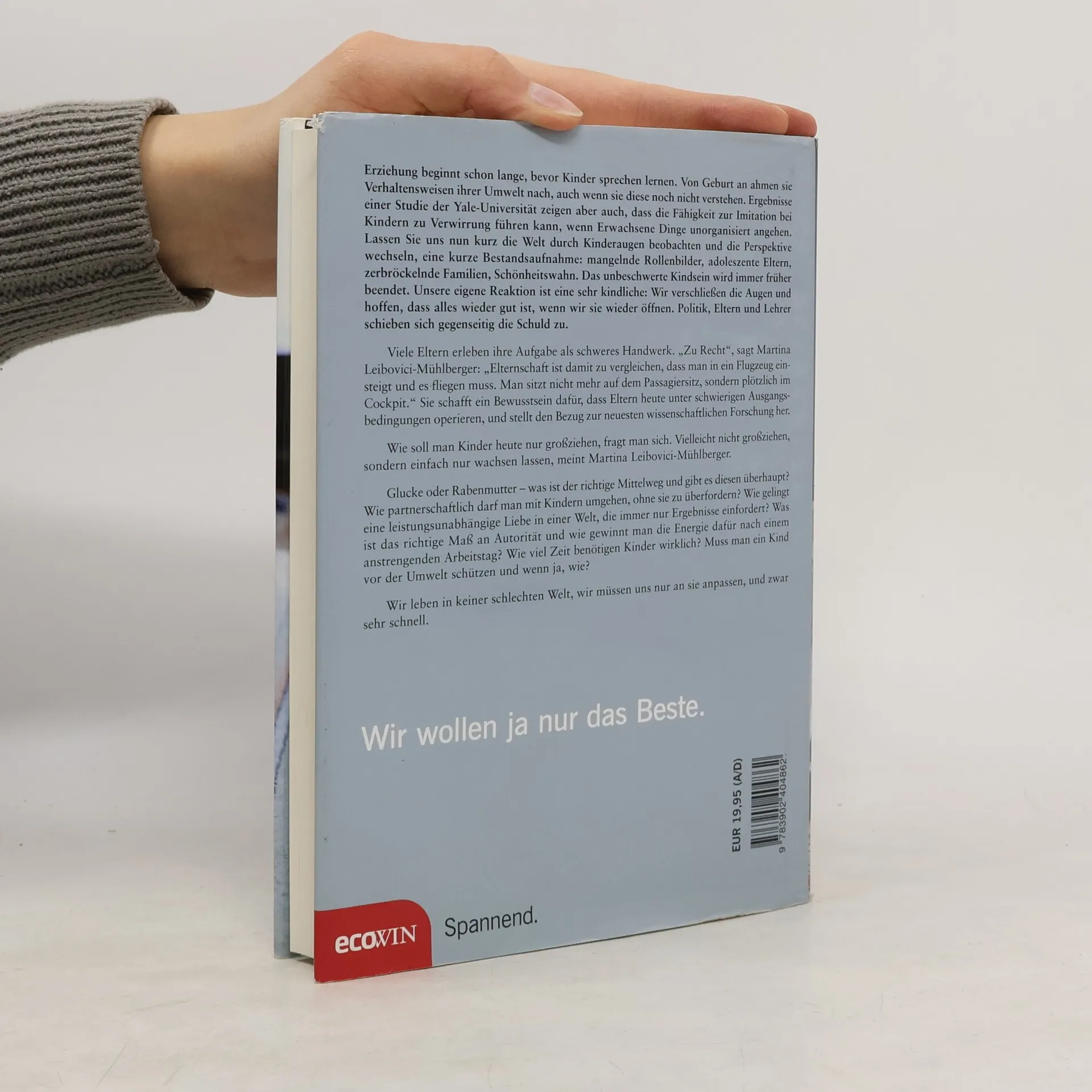 Erziehung beginnt lange vor dem Sprechen. Kinder ahmen Verhaltensweisen ihrer Umwelt nach, auch ohne Verständnis. Eine Yale-Studie zeigt, dass unorganisierte Erwachsenenverhalten bei Kindern zu Verwirrung führen kann. Ein Blick durch Kinderaugen offenbart: mangelnde Rollenbilder, adoleszente Eltern, zerbröckelnde Familien und Schönheitswahn. Das unbeschwerte Kindsein endet immer früher. Unsere Reaktion ist oft kindlich: Wir verschließen die Augen und hoffen auf Besserung. Politik, Eltern und Lehrer schieben sich gegenseitig die Schuld zu. Viele Eltern empfinden ihre Aufgabe als herausfordernd. Martina Leibovici-Mühlberger vergleicht Elternschaft mit dem Fliegen eines Flugzeugs – man sitzt nicht mehr im Passagiersitz, sondern im Cockpit. Sie betont, dass Eltern unter schwierigen Bedingungen agieren und verknüpft dies mit neuester Forschung. Wie soll man Kinder heute großziehen? Vielleicht sollten wir sie einfach wachsen lassen. Fragen nach dem richtigen Mittelweg zwischen Überbehütung und Freiheit, nach partnerschaftlichem Umgang und leistungsunabhängiger Liebe stellen sich. Wie viel Autorität ist nötig, und wie findet man die Energie dafür? Wie viel Zeit benötigen Kinder wirklich, und wie schützt man sie vor der Umwelt? Wir leben in einer Welt, die Anpassung erfordert, und zwar schnell.