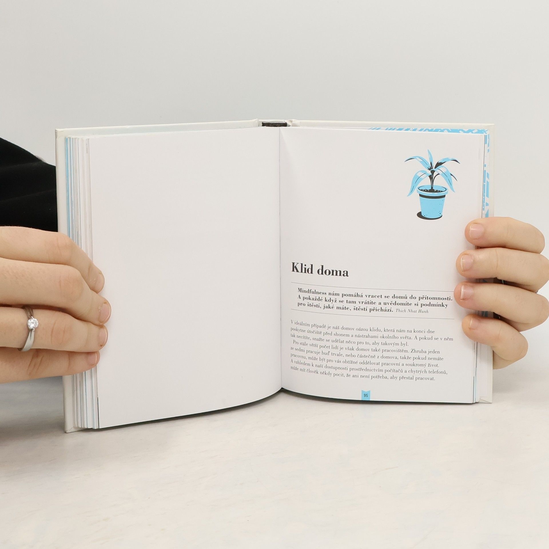 Jste ve stresu? Cítíte se přetížení? Trpíte úzkostí? V dnešní době jsou mnozí z nás téměř nepřetržitě v jednom kole, a proto bývá obtížné najít si chvilku času ke zklidnění. Tato kniha vysvětluje, jak si vytvořit prostor a jak na chvíli vyskočit z každodenního kolotoče povinností a starostí. Naučíte-li se plně prožívat přítomný okamžik a přistupovat k životu s rozmyslem, významně to ovlivní vaše zdraví, vztahy i váš postoj k životu a k práci. Kniha nabízí nové, praktické tipy, které zahrnují spojení mysli a těla, dechová cvičení, jednoduché vizualizační techniky a meditaci. Vysvětluje, jak vnést klid do školního a pracovního prostředí a osobních vztahů, abychom se zbavili stresu, soustředili se a dosáhli lepších výsledků s menším úsilím.