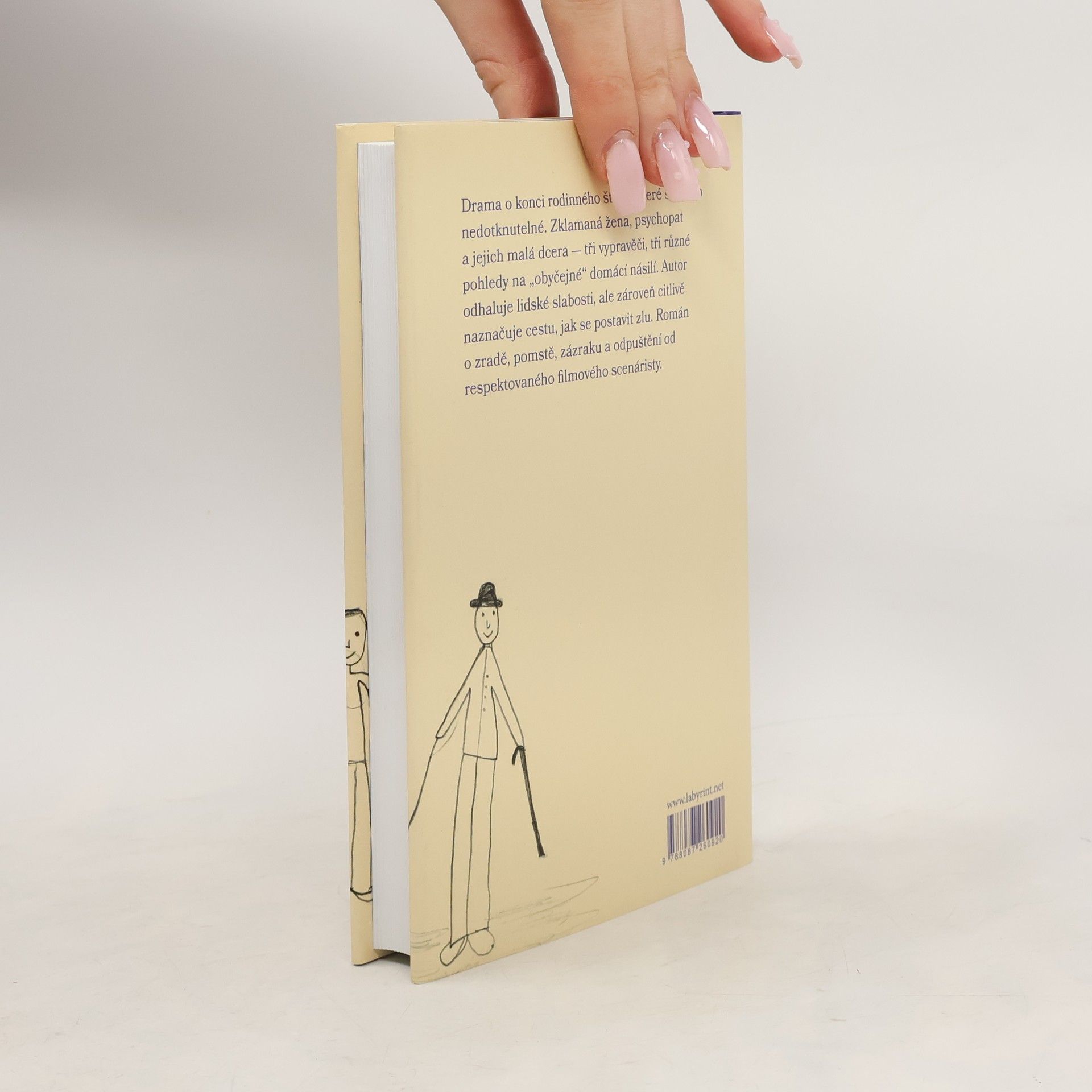 Drama o konci rodinného štěstí, které se zdálo nedotknutelné. Zklamaná žena, psychopat a jejich malá dcera — tři vypravěči, tři různé pohledy na „obyčejné“ domácí násilí. Autor odha-luje lidské slabosti, ale zároveň citlivě naznačuje cestu, jak se postavit zlu. Román o zradě, pomstě, zázraku a odpuštění od respektovaného filmového scenáristy.