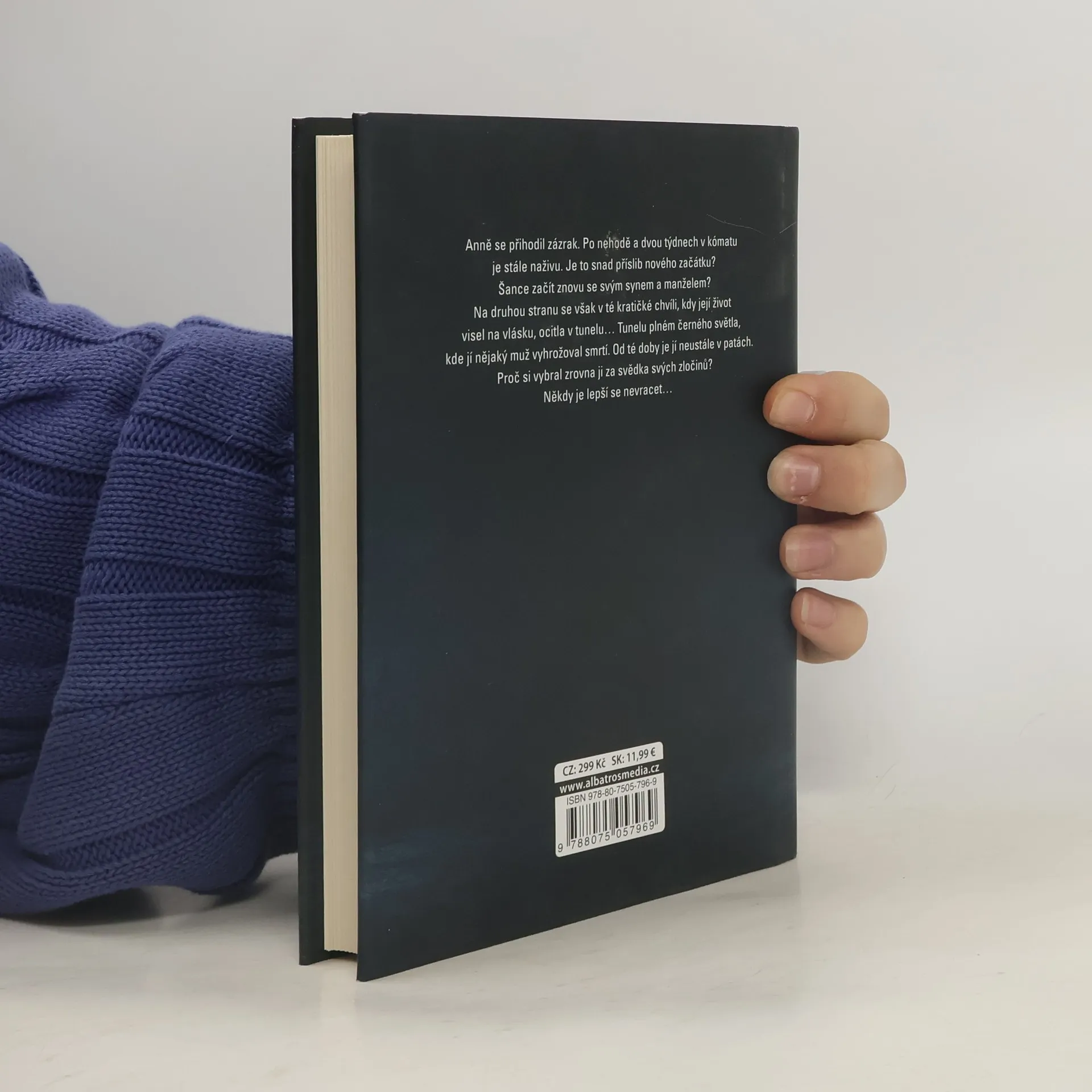 Anně se přihodil zázrak. Po nehodě a dvou týdnech v kómatu je stále naživu. Je to snad příslib nového začátku? Šance začít znovu se svým synem a manželem? Na druhou stranu se však v té kratičké chvíli, kdy její život visel na vlásku, ocitla v tunelu… Tunelu plném černého světla, kde jí nějaký muž vyhrožoval smrtí… Od té doby je jí neustále v patách. Proč si vybral zrovna ji za svědka svých zločinů? Někdy je lepší se nevracet…