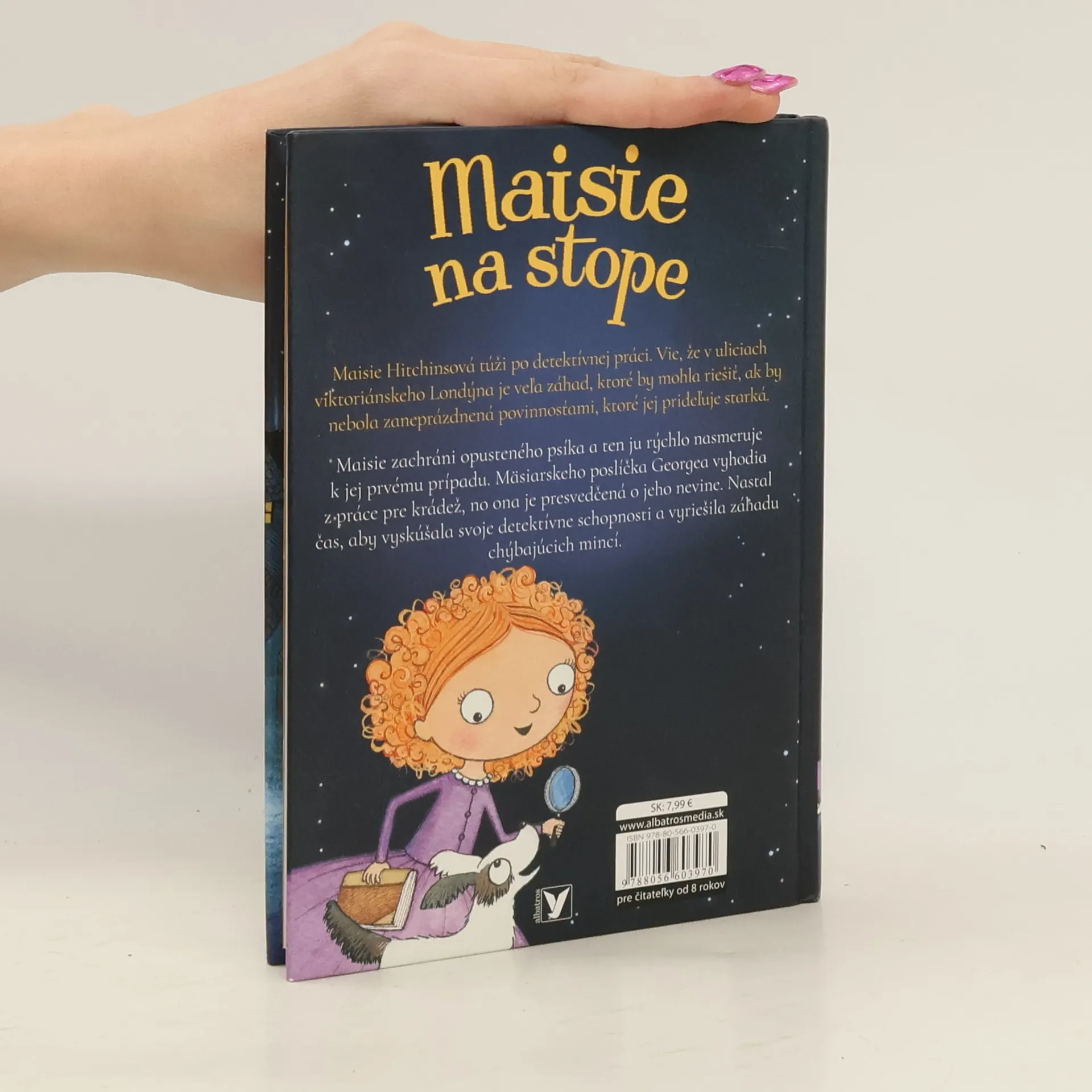 Maisie Hitchinsová túži po detektívnej práci. Vie, že v uliciach viktoriánskeho Londýna je veľa záhad, ktoré by mohla riešiť, ak by nebola zaneprázdnená povinnosťami, ktoré jej prideľuje starká… Maisie zachráni opusteného psíka a ten ju rýchlo nasmeruje k jej prvému prípadu. Mäsiarskeho poslíčka Georgea vyhodia z práce pre krádež, no ona je presvedčená o jeho nevine. Nastal čas, aby vyskúšala svoje detektívne schopnosti a vyriešila záhadu chýbajúcich mincí…