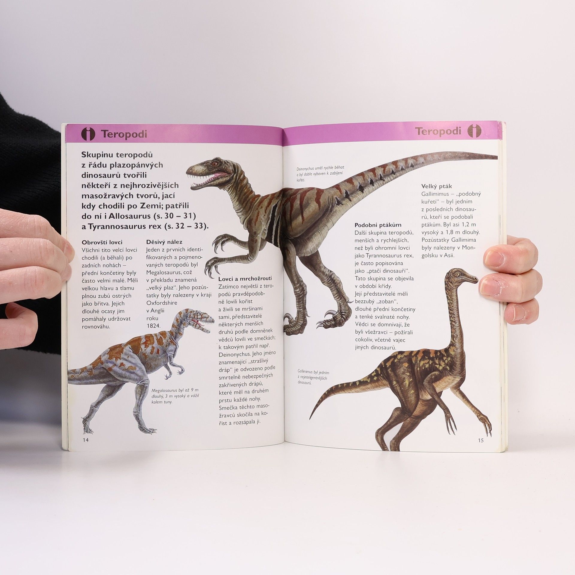 Čtenář se krátce dozví o době, ve které dinosauři žili, nebo o tom, co vše paleontologové mohou zjistit z nalezených zkamenělin. Nastíněny jsou tu i teorie o vyhynutí dinosourů. Těžiště příručky je pak v popisech jednotlivých druhů těchto pravěkých ještěrů (každá dvojstrana je věnována jednomu druhu). U nejznámějších je uvedeno do jaké skupiny patří, jaké výšky a délky dosahovali, doba, kdy žili a ve kterých místech se vyskytla naleziště fosílií. Nechybí ani ilustrace.