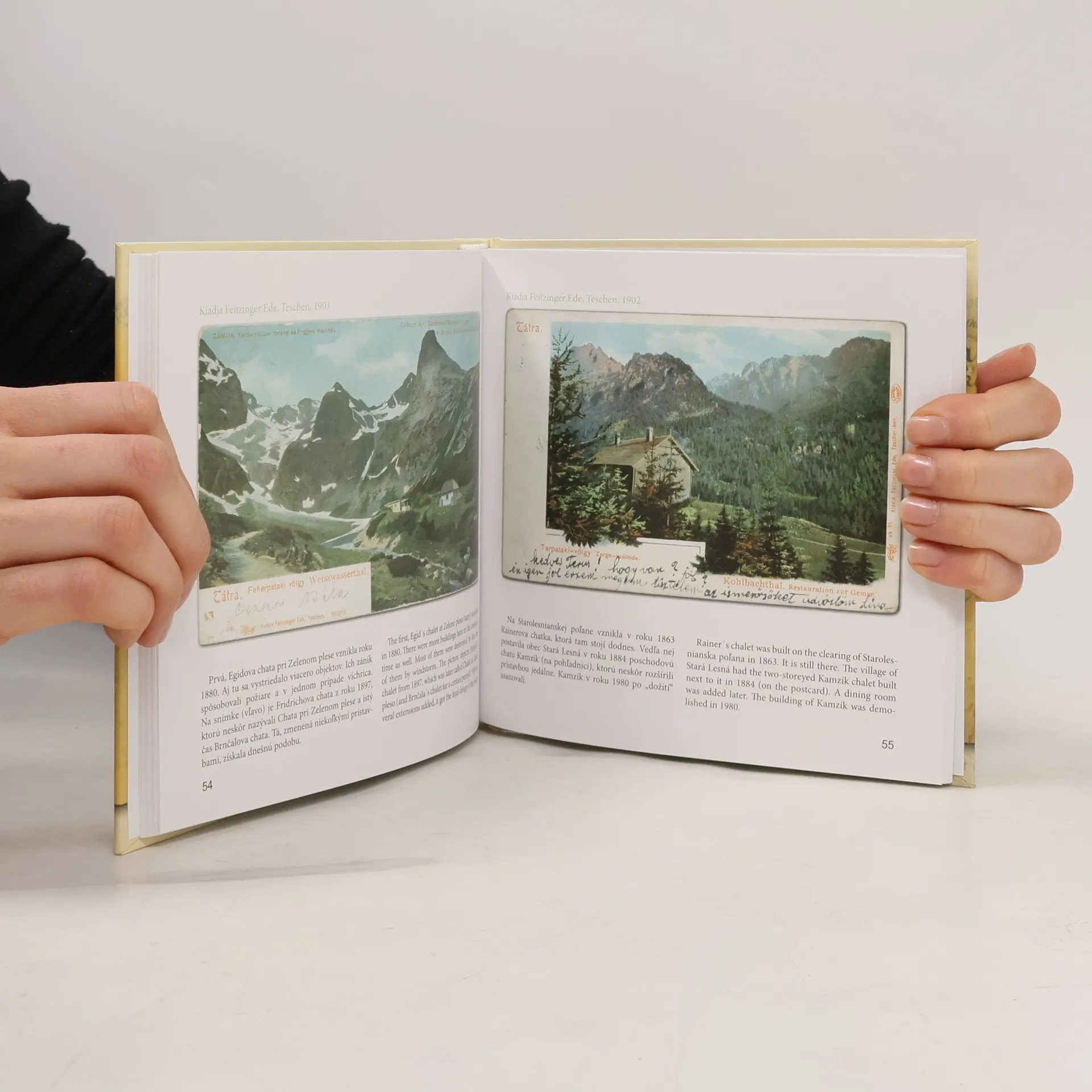 Stručná história turistiky a kúpeľníctva vo Vysokých Tatrách, dobové aj súčasné fotografie, prvé pohľadnice, dopravné prostriedky, horské športy a Tatry po prvej svetovej vojne.