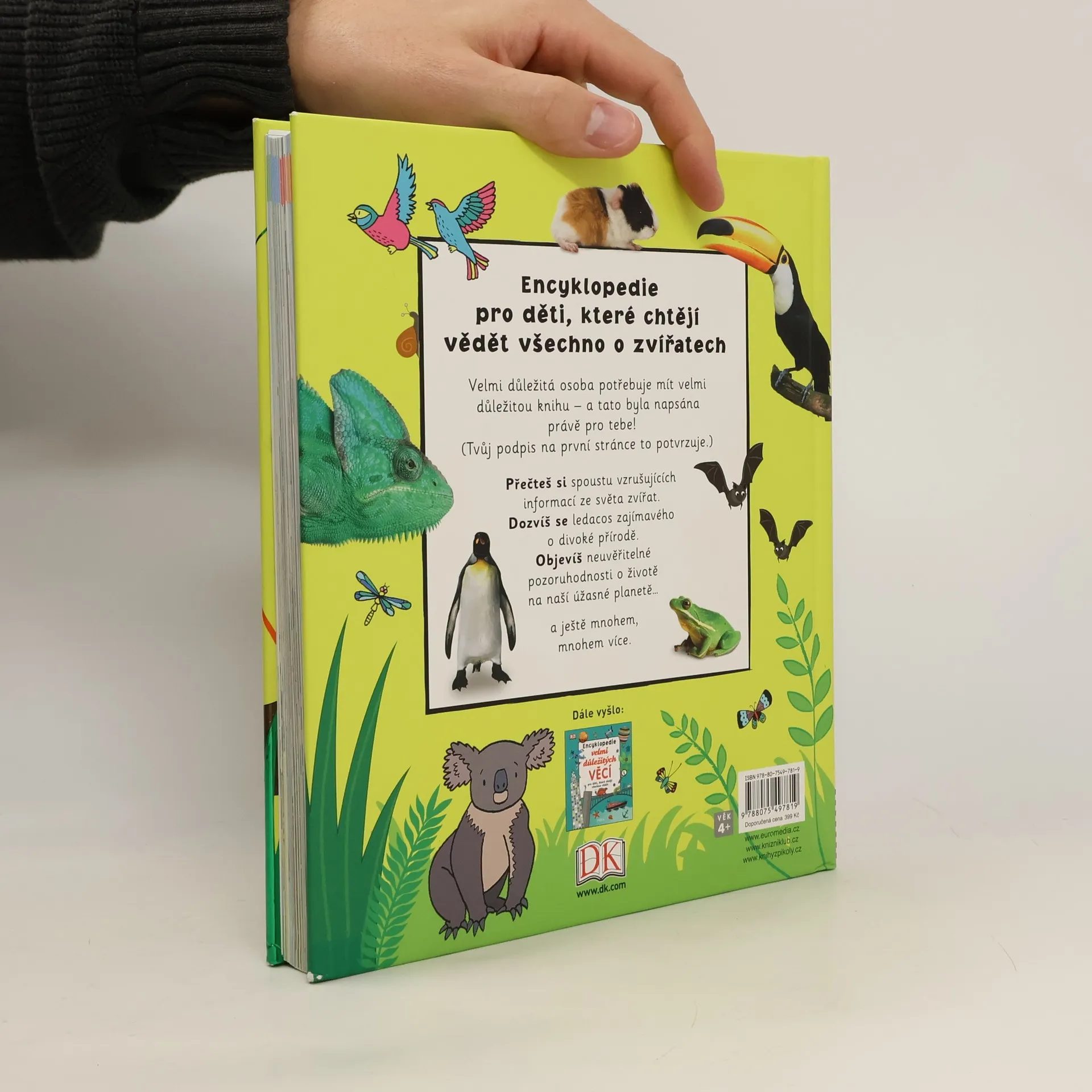 Pro děti, které chtějí o zvířatech vědět všechno. Zvídavé děti od 5 let se v této přehledné encyklopedii s bohatými ilustracemi dozvědí vzrušující a velmi důležité informace o světě zvířat, která s námi obývají naši planetu – poznají nejen zvířata žijící v různých prostředích nebo dokonce v extrémních podmínkách, ale i zvířata používající originální taktiky k přežití, obraně či shánění potravy, zvířata lecčím pozoruhodná, zvířata ohrožená… a vůbec se dozvědí spoustu zajímavostí, které v jiných knihách nenajdou. Pro zvídavé milovníky zvířat je tato knížka k nezaplacení!