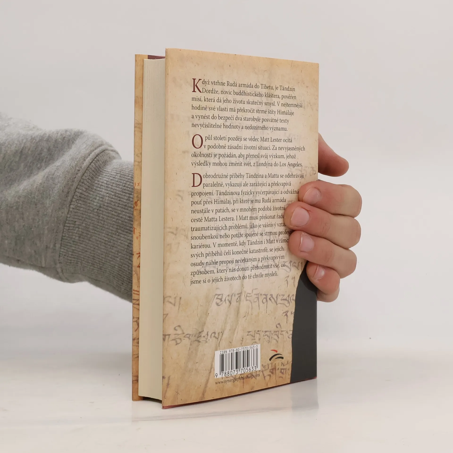 Když vtrhne Rudá armáda do Tibetu, je Tändzin Dordže, novic buddhistického kláštera, pověřen misí, která dá jeho životu skutečný smysl. V nejtemnější hodině své vlasti má překročit strmé štíty Himálají a vynést do bezpečí dva starobylé posvátné texty nevyčíslitelné hodnoty a nedozírného významu. O půl století později se vědec Matt Lester ocitá v podobně zásadní životní situaci. Za nevyjasněných okolností je požádán, aby přenesl svůj výzkum, jehož výsledky mohou změnit svět, z Londýna do Los Angeles. Dobrodružné příběhy Tändzina a Matta se odehrávají paralelně, vykazují ale zarážející a překvapivá propojení. Tändzinova fyzicky vyčerpávající a odvážná pouť přes Himálaje, při které je mu Rudá armáda neustále v patách, se v mnohém podobá životní cestě Matta Lestera. I Matt musí překonat řadu traumatizujících problémů, jako je vášnivý vztah se snoubenkou Isabellou nebo potíže spojené se strmou profesní kariérou. V momentě, kdy Tändzin i Matt v rámci svých příběhů čelí konečné katastrofě, se jejich osudy náhle propojí nečekaným a překvapivým způsobem, který nás donutí přehodnotit vše, co jsme si o jejich životech do té chvíle mysleli.