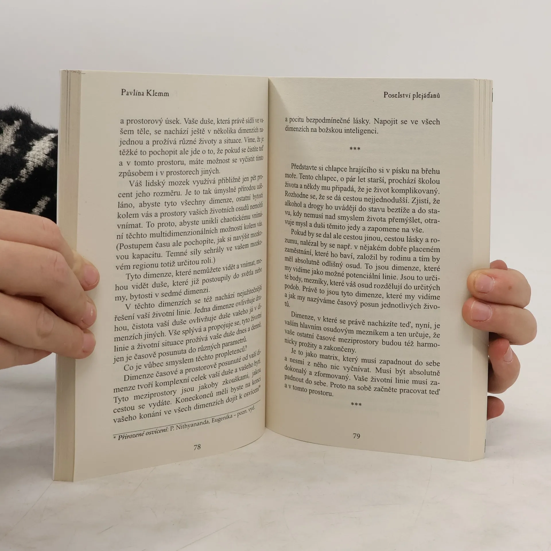 Plejáďané jsou velmi vyspělé a ušlechtilé inteligentní bytosti z jiné části vesmíru. Protože jsou starší a zkušenější, pomáhají nám a mají o nás starost jako milující starší sourozenci. Vysvětlují nám, jak se máme změnit, aby se učinila přítrž problémům, které zaplavují Zemi, a abychom lépe využívali potenciál, který máme. Dělí se s námi o spoustu zajímavých informací a důležitých rad. Rovněž poutavě vyprávějí o životě na jejich domovské planetě. A také pro nás vytvořili praktická duchovní cvičení. Některá z nejzajímavějších témat, k nimž se Plejáďané v této knize vyjadřují: temné síly a jejich negativní vliv, splynutí s Bohem, vztahy a partnerství, přirozená sebeláska, sexuální energie, úloha a vývoj člověka, časové prostory a dimenze, znečištění planety, myšlenková tvorba nové reality, harmonizace těla a duše...