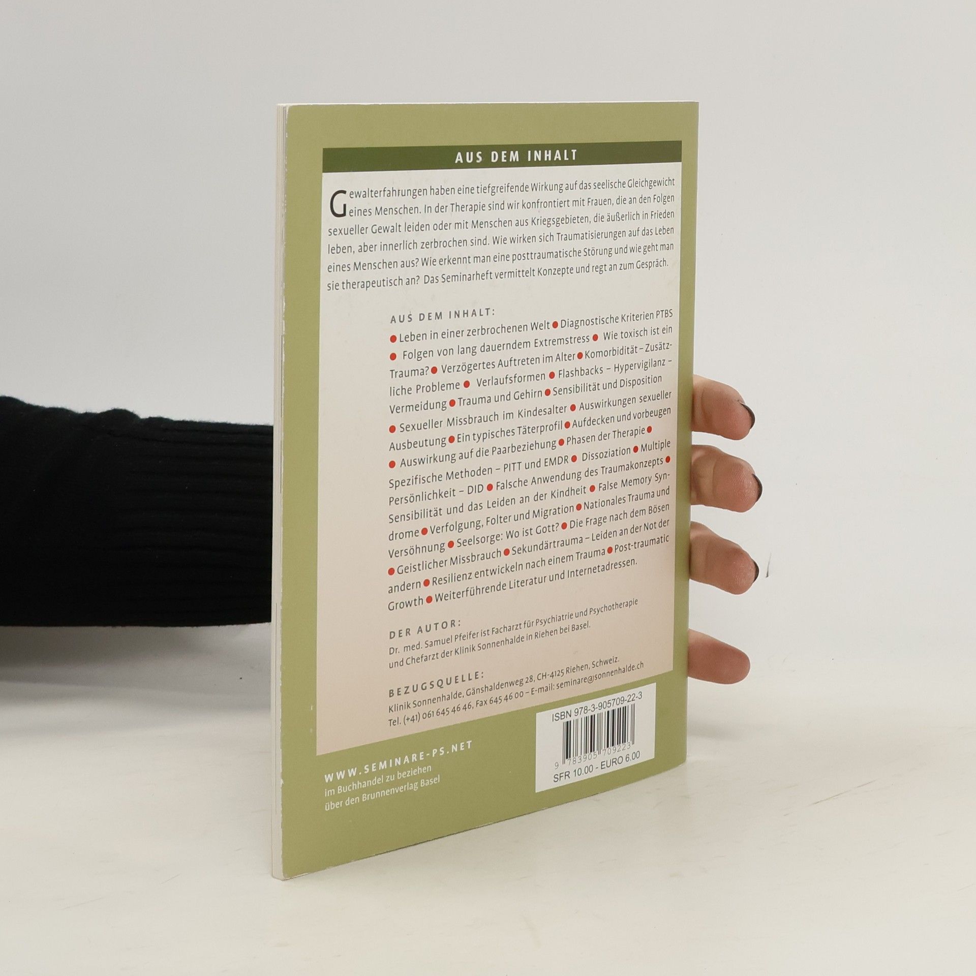 Gewalterfahrungen haben eine tiefgreifende Wirkung auf das seelische Gleichgewicht eines Menschen. In der Therapie sind wir konfrontiert mit Frauen, die an den Folgen sexueller Gewalt leiden oder mit Menschen aus Kriegsgebieten, die äußerlich in Frieden leben, aber innerlich zerbrochen sind. Wie wirken sich Traumatisierungen auf das Leben eines Menschen aus? Wie erkennt man eine posttraumatische Störung und wie geht man sie therapeutisch an? Das Seminarheft vermittelt Konzepte und regt an zum Gespräch.