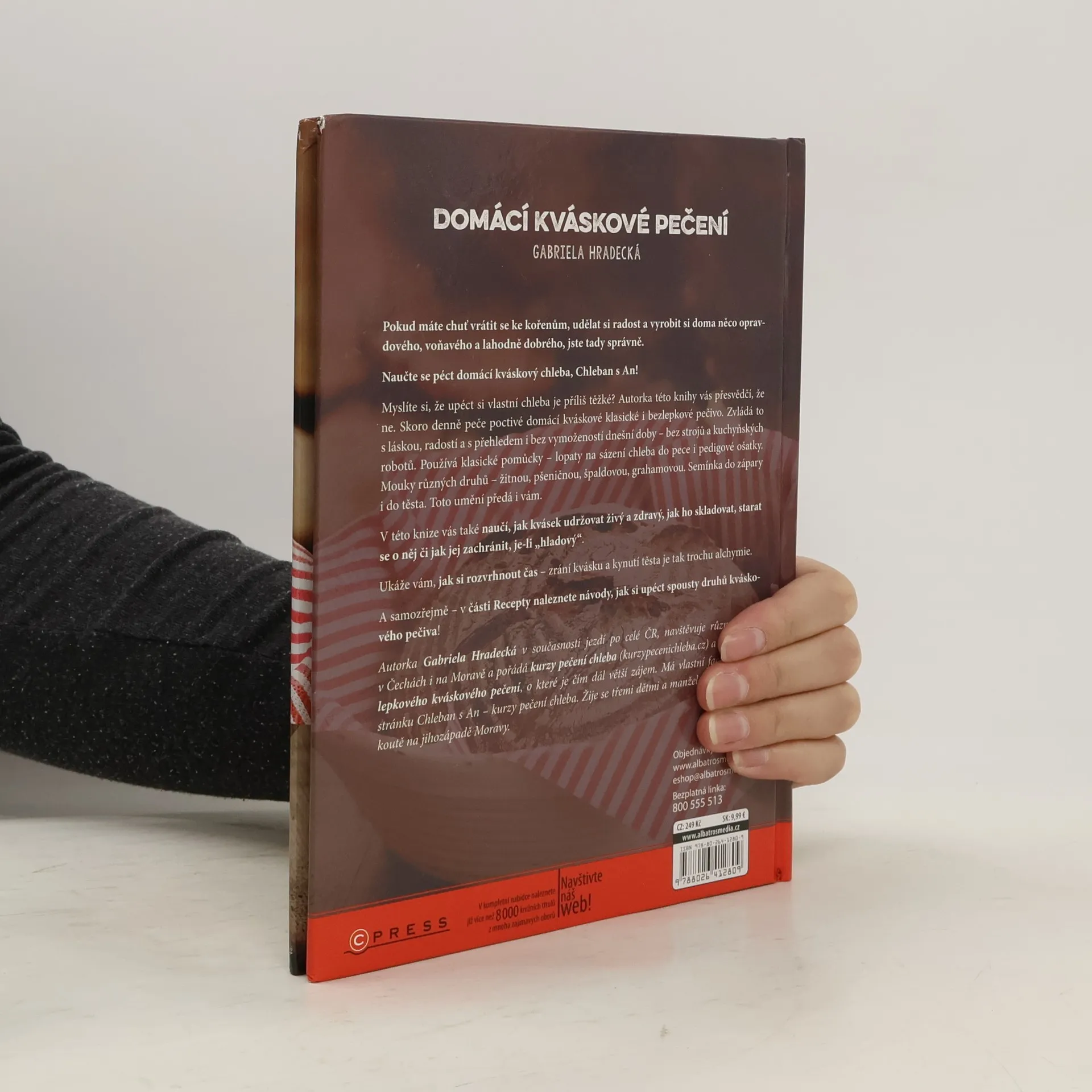 Myslíte si, že upéct si vlastní chleba je příliš těžké? Autorka této knihy vás přesvědčí, že ne. Skoro denně peče poctivé domácí kváskové klasické i bezlepkové pečivo. Používá tradiční pomůcky – lopaty na sázení chleba do pece i pedigové ošatky. Mouky různých druhů – žitnou, pšeničnou, špaldovou, grahamovou. Semínka do zápary i do těsta. Toto umění předá i vám. V této knize vás také naučí, jak se starat o kvásek, jak si při přípravě rozvrhnout čas a samozřejmě tam naleznete i recepty na lahodné pečivo.