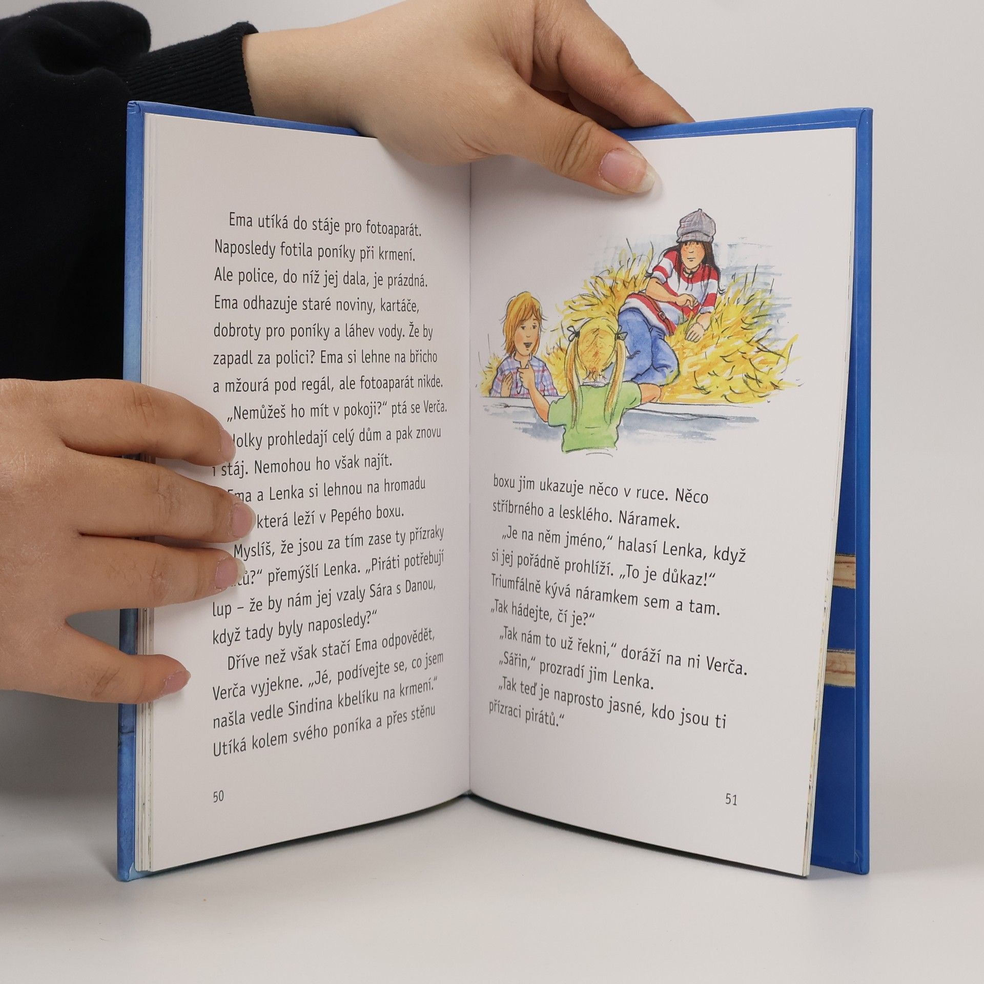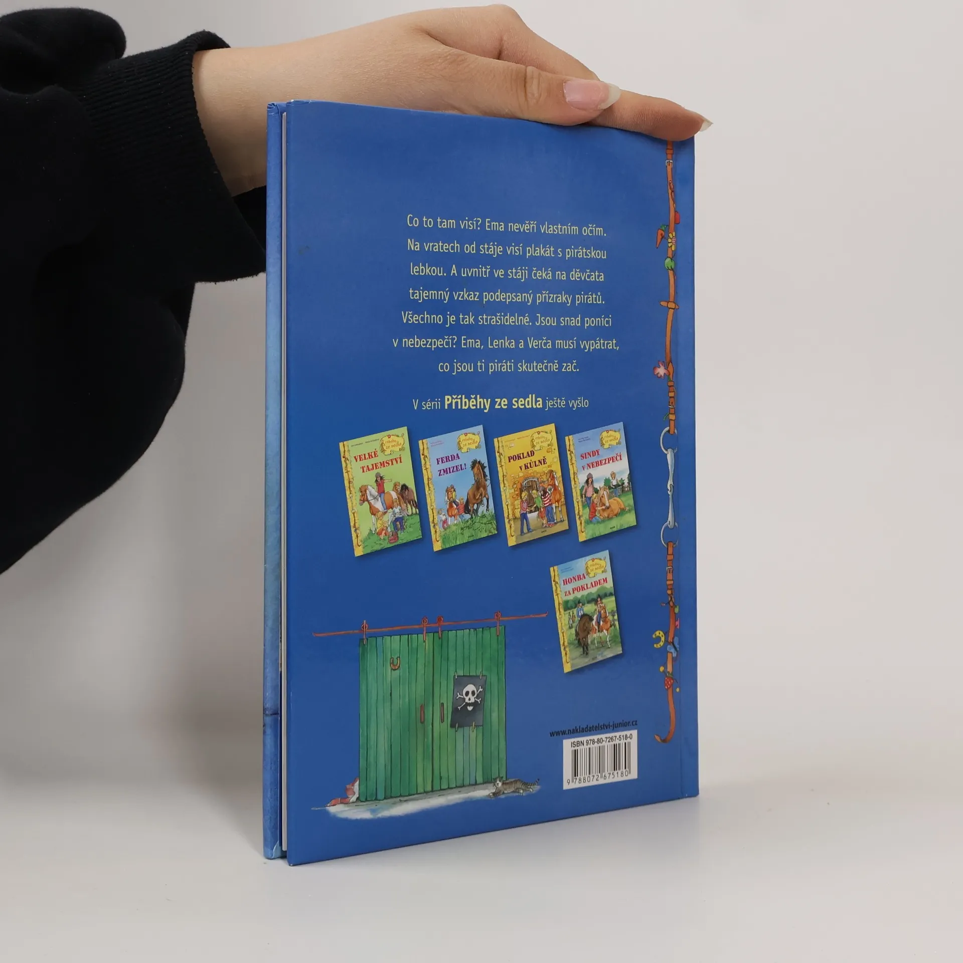 Příběhy o třech kamarádkách a jejich ponících. Pirátský znak - bílá lebka se zkříženými hnáty. Objevuje se na vratech stáje, pod držáky na uzdy, ale i na buclatém břiše poníka Sindy. Kdo to udělal? A kdo ukradl fotoaparát? Verča, Lenka a Ema to vypátrají. Najdou ve stáji stříbrný náramek se jménem spolužačky Sáry a ještě navíc vymyslí projekt, který má ve škole obrovský úspěch. Fotí poníky. Sindy má bílé a černé pruhy jako zebra, Pepé a Ferda září lví barvou a hřívy jim zhoustly stuhami z krepového papíru. Jsou to skvělé fotky ze safari.