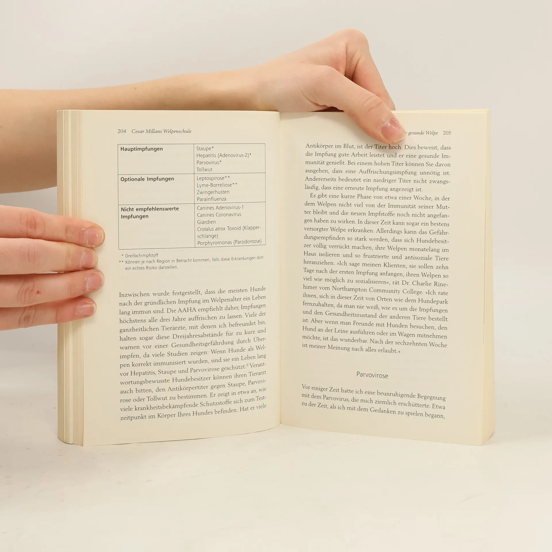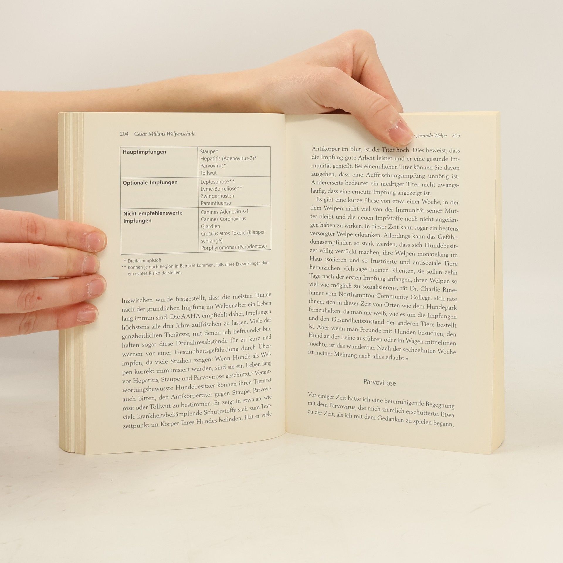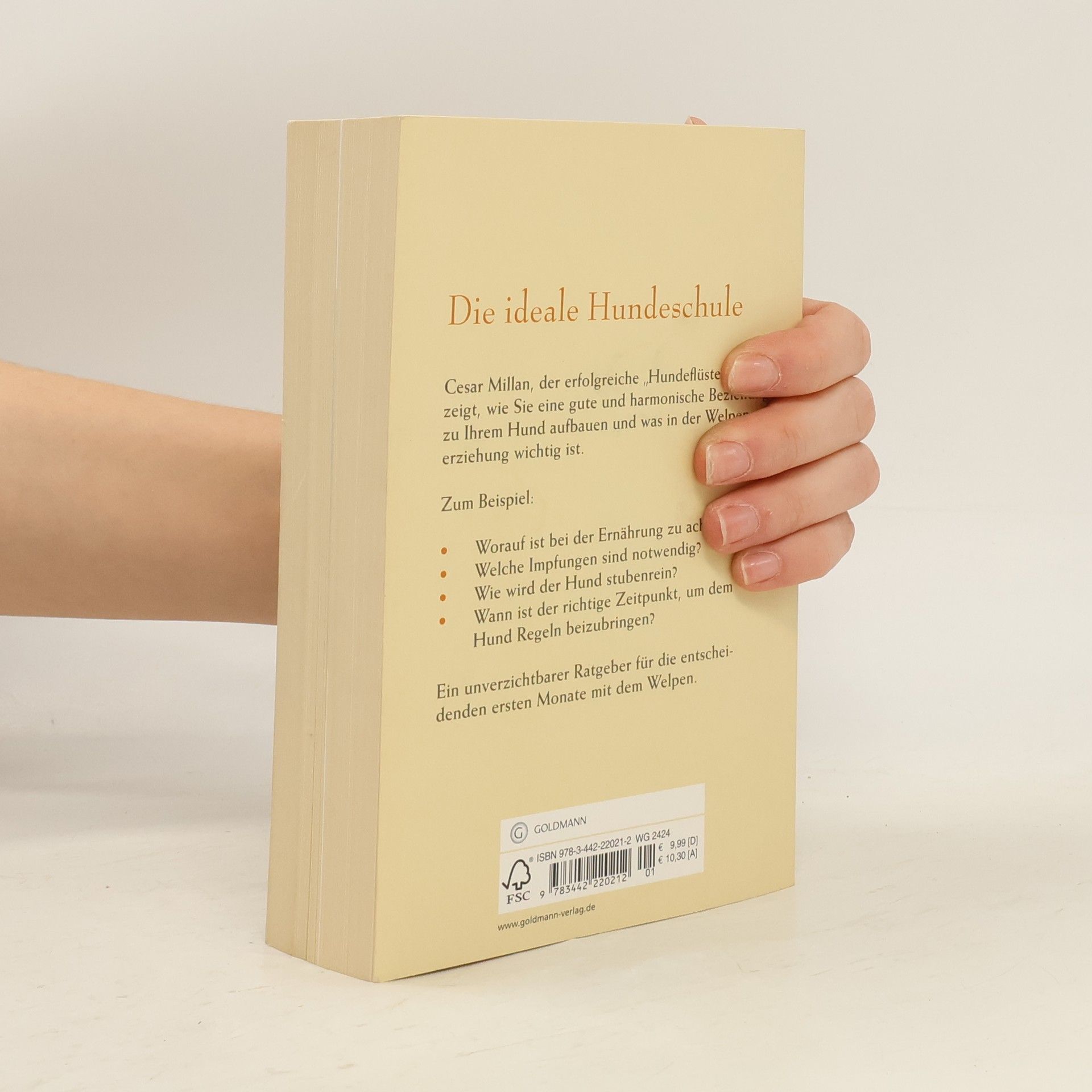 Nur die gute Welpenschule führt zu einer glücklichen Beziehung von Herrn und Hund Cesar Millan hat bereits tausenden Hundebesitzern geholfen, ihren geliebten Gefährten besser zu verstehen und das Zusammenleben optimal zu gestalten. Dieses Buch enthält alles, was man für die perfekte Hundeerziehung wissen muss. Worauf ist bei der Ernährung zu achten? Welche Impfungen sind notwendig? Wie wird der Hund stubenrein? Wann ist der richtige Zeitpunkt, um dem Hund Regeln beizubringen? Mit seinen praxiserprobten Ratschlägen wird der renommierte und sympathische »Hundeflüsterer« zum unverzichtbaren Coach für die ersten Monate mit dem Welpen – und ebnet den Weg für eine lebenslange erfüllte Beziehung zwischen Mensch und Hund. Ausstattung: 8 Farbtafeln, div. s/w. Fotos