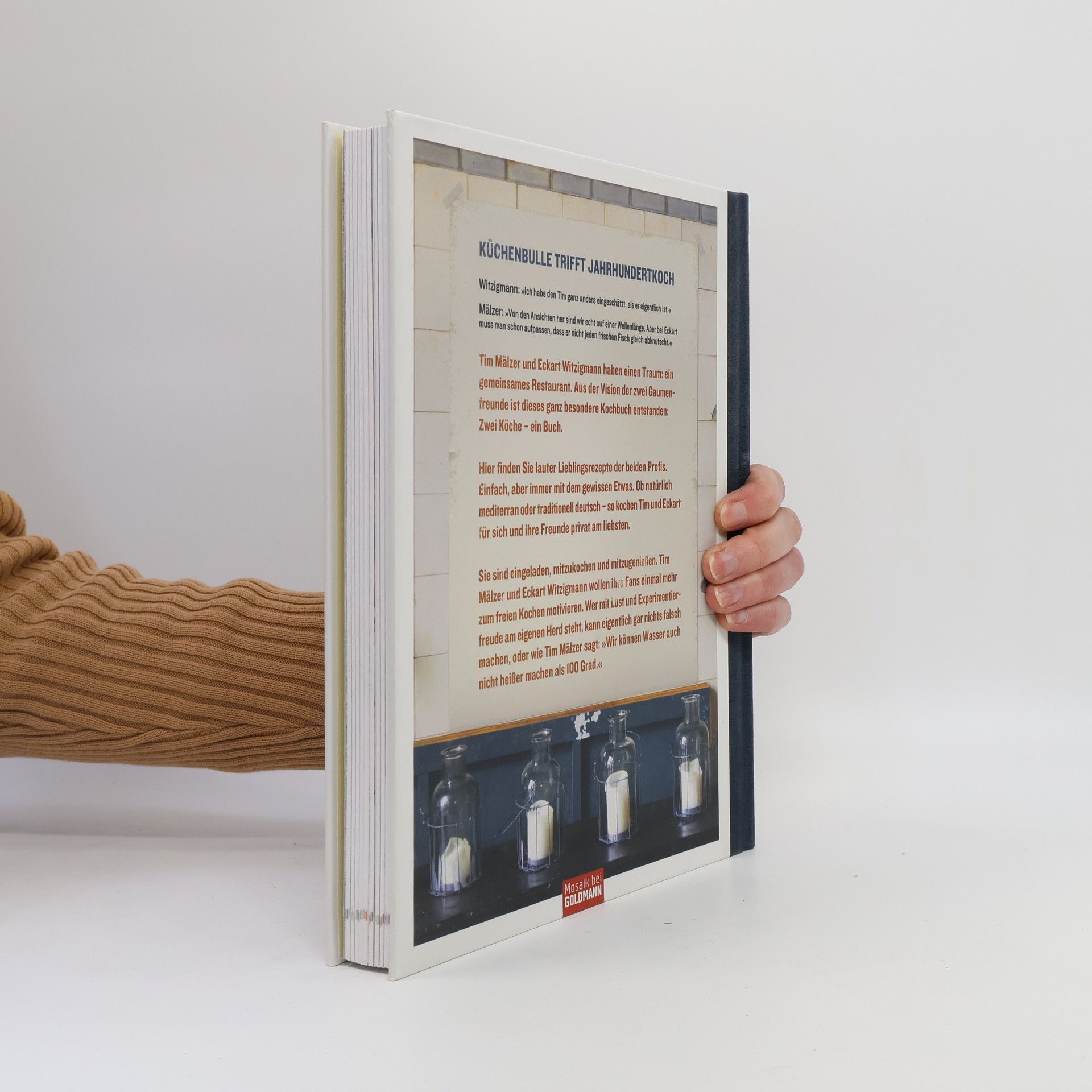 Kochen von Freunden, für Freunde lässig, cool und köstlich! Küchenbulle trifft Jahrhundertkoch Witzigmann: Ich habe den Tim ganz anders eingeschätzt, als er eigentlich ist. Mälzer: Von den Ansichten her sind wir echt auf einer Wellenlänge. Aber bei Eckart muss man schon aufpassen, dass er nicht jeden frischen Fisch gleich abknutscht. Tim Mälzer und Eckart Witzigmann haben einen Traum: ein gemeinsames Restaurant. Aus der Vision der zwei Gaumenfreunde ist dieses ganz besondere Kochbuch entstanden: Zwei Köche ein Buch. Hier finden Sie lauter Lieblingsrezepte der beiden Profis. Einfach, aber immer mit dem gewissen Etwas. Ob natürlich mediterran oder traditionell deutsch so kochen Tim und Eckart für sich und ihre Freunde privat am liebsten. Sie sind eingeladen, mitzukochen und mitzugenießen. Tim Mälzer und Eckart Witzigmann wollen ihre Fans einmal mehr zum freien Kochen motivieren. Wer mit Lust und Experimentierfreude am eigenen Herd steht, kann eigentlich gar nichts falsch machen oder wie Tim Mälzer sagt: Wir können Wasser auch nicht heißer machen als 100 Grad.