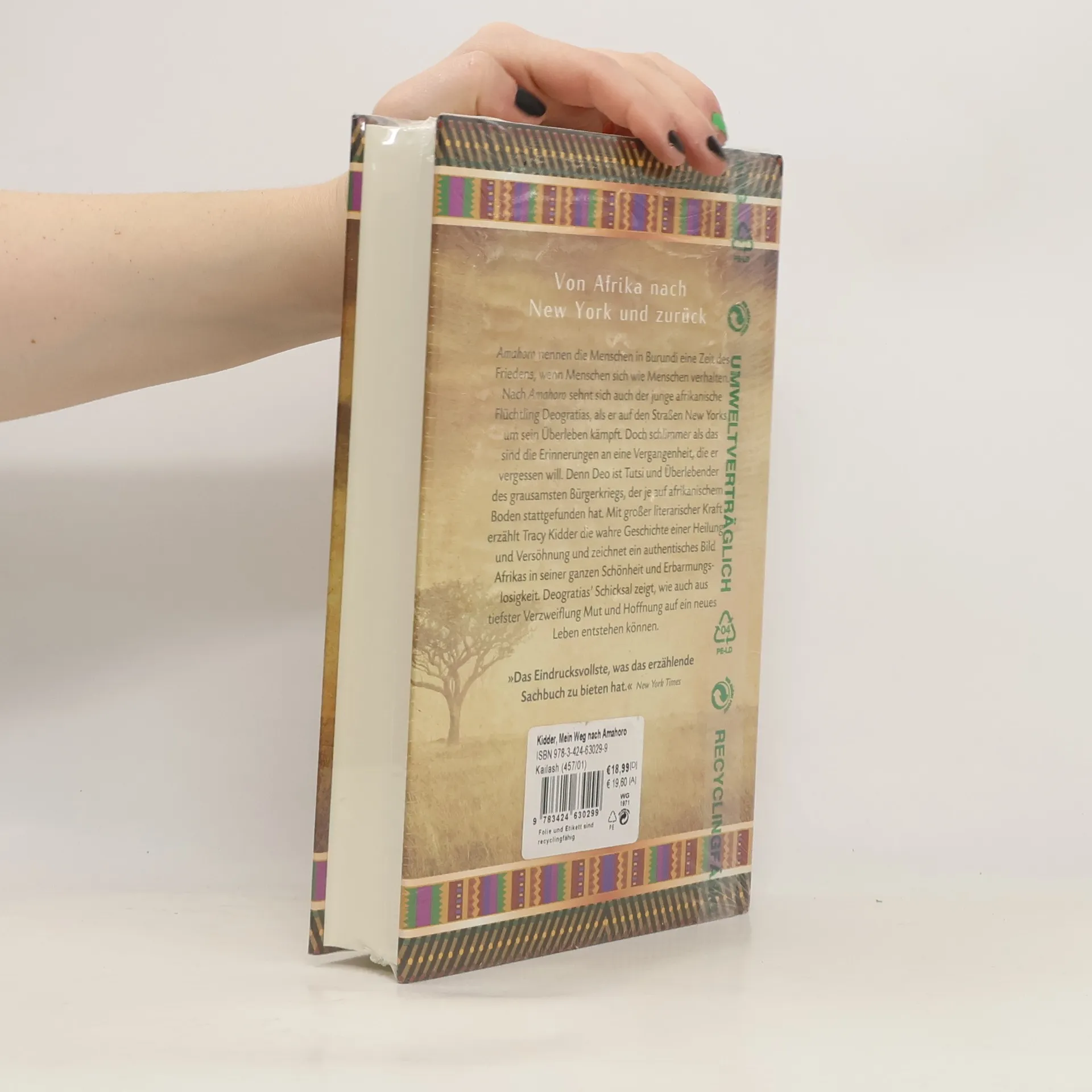 Amahoro nennen die Menschen in Burundi eine Zeit des Friedens, wenn Menschen sich noch wie Menschen verhalten. Nach Amahoro sehnt sich auch der junge Afrikaner Deogratias, als er in Ruanda auf den Flieger nach New York wartet. Er landet mit dem Wenigen, was er auf dem Leib trägt, schläft im Central Park, lernt in Buchläden Englisch aus Wörterbüchern und kämpft auf der Straße ums Überleben. Nachts quälen ihn Alpträume und Erinnerungen an unaussprechliche Dinge, die er vergessen will. Nach und nach enthüllt Tracy Kidder in Rückblenden das Grauen, dem Deo entkommen ist, erzählt von der (noch) friedlichen Kindheit in Burundi und von dem Ausbruch des unvorstellbaren Massakers der Tutsi und Hutu, dem die Welt fassungslos zusah. Unzählige Male sah Deo dem Tod ins Gesicht, und ebenso oft retteten ihn Akte der Menschlichkeit. So auch in New York. Der Obdachlose findet Freunde, studiert Medizin und wird Arzt, der Wunsch nach Verstehen jedoch bleibt. Er kehrt ins versehrte Burundi zurück und gründet ein Hilfswerk für Arme. Tracy Kidder erzählt mit großer literarischer Kraft von einem Schicksal, das niemanden unberührt lässt. Deogratias' Geschichte zeigt, wie auch aus tiefster Verzweiflung Mut und Hoffnung auf ein neues Leben erwachsen können.