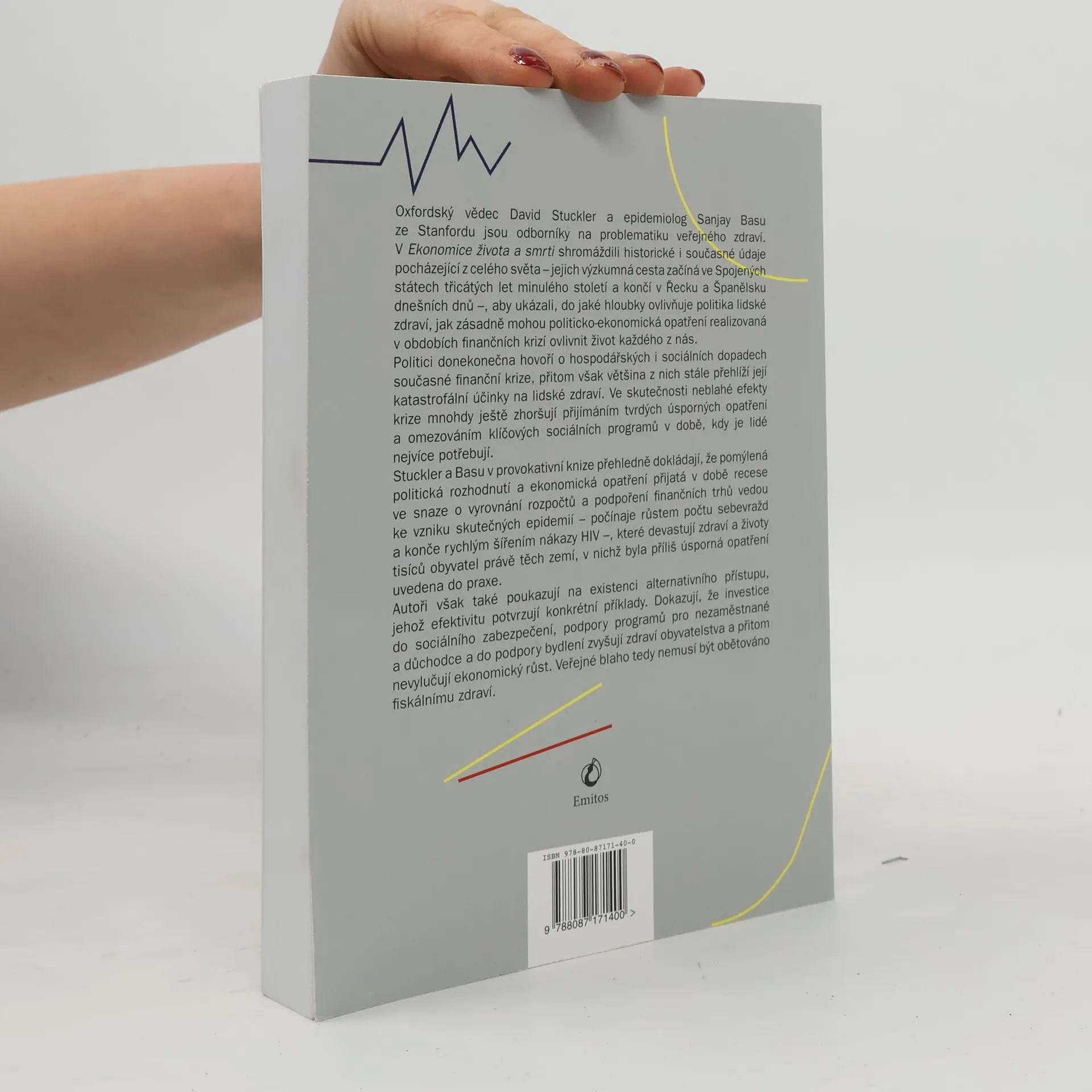 Oxfordský vědec David Stuckler a epidemiolog Sanjay Basu z Stanfordu se zaměřují na vliv politiky na veřejné zdraví. V jejich díle shromáždili historické a současné údaje z celého světa, od Spojených států třicátých let až po dnešní Řecko a Španělsko. Ukazují, jak politicko-ekonomická opatření během finančních krizí zásadně ovlivňují zdraví lidí. Politici často hovoří o ekonomických a sociálních dopadech krize, ale přehlížejí její devastující účinky na zdraví. Krize často zhoršují situaci zaváděním tvrdých úsporných opatření a omezováním klíčových sociálních programů, když je lidé nejvíce potřebují. Stuckler a Basu dokládají, že chybná politická rozhodnutí a ekonomická opatření během recese vedou k epidemiím, jako je nárůst sebevražd a šíření HIV, které devastují zdraví obyvatel zemí s přísnými úsporami. Autoři však také představují alternativní přístup, jehož efektivitu dokazují konkrétní příklady. Investice do sociálního zabezpečení a podpory programů pro nezaměstnané a důchodce zlepšují zdraví populace a zároveň podporují ekonomický růst. Veřejné blaho tedy nemusí být obětováno fiskálnímu zdraví.