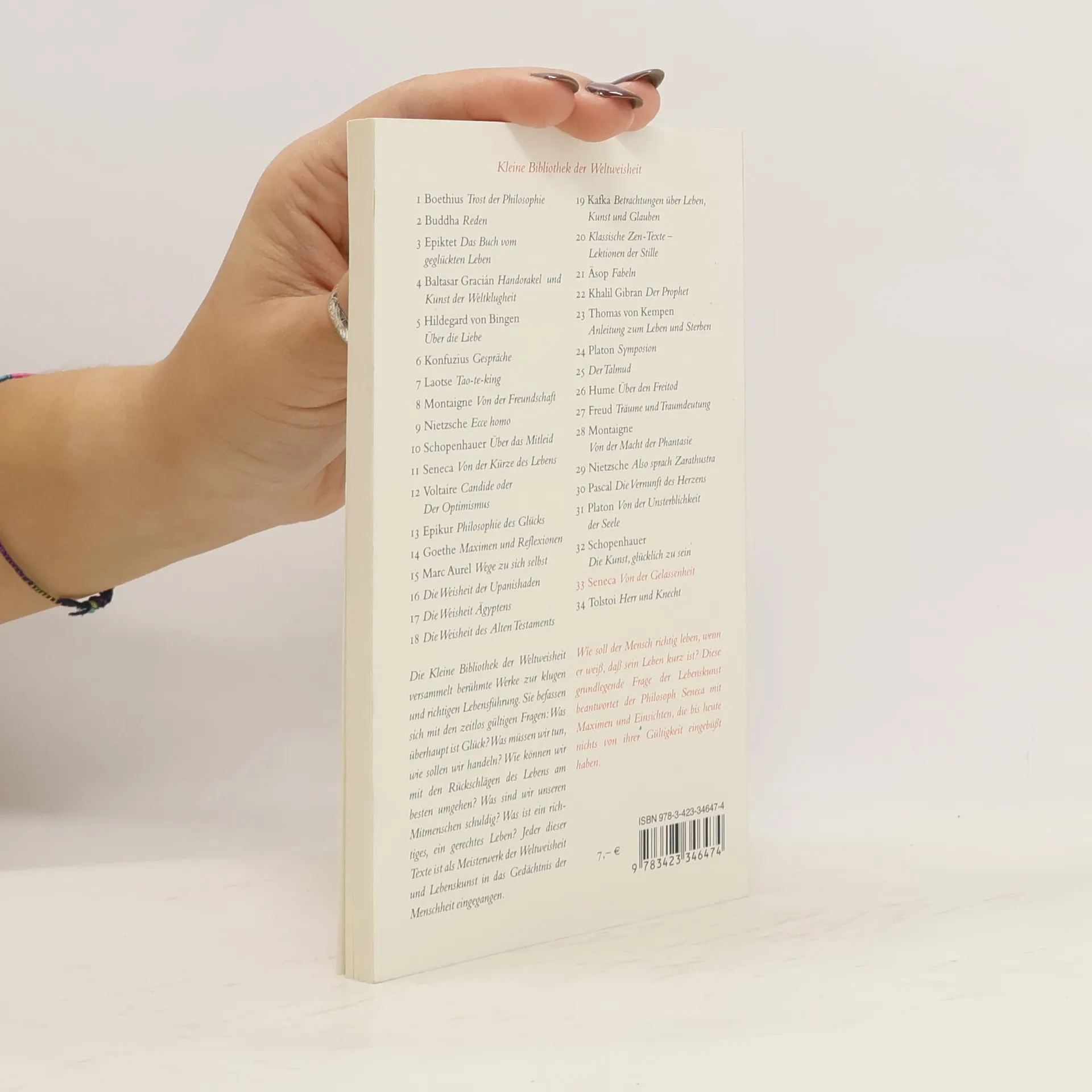 »Nichts ist so bitter, dass ein gefaßtes Herz keinen Trost fände.« Wie führe ich mein Leben im Einklang mit mir selbst und meinen Mitmenschen? Wie gelange ich zu innerer Ruhe und Zufriedenheit, ohne meinen Alltag aufzugeben? Der römische Stoiker Seneca (4 v. Chr. - 65 n. Chr.), einer der meist gelesenen Schriftsteller seiner Zeit, dessen Bedeutung die Jahrtausende überdauert hat, gab in seiner Schrift zeitlos gültige Antworten auf diese Fragen.