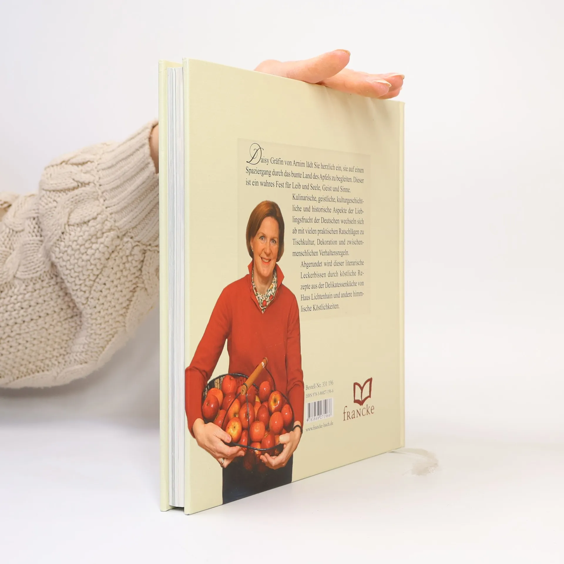 Daisy Gräfin von Arnim lädt Sie herzlich ein, sie auf einen Spaziergang durch das bunte Land des Apfels zu begleiten. Dieser ist ein wahres Fest für Leib und Seele, Geist und Sinne. Kulinarische, geistliche, kulturgeschichtliche und historische Aspekte der Lieblingsfrucht der Deutschen wechseln sich ab mit vielen praktischen Ratschlägen zu Tischkultur, Dekoration und zwischenmenschlichen Verhaltensregeln. Abgerundet wird dieser literarische Leckerbissen durch köstliche Rezepte aus der Delikatessenküche von Haus Lichtenhain und andere himmlische Köstlichkeiten.