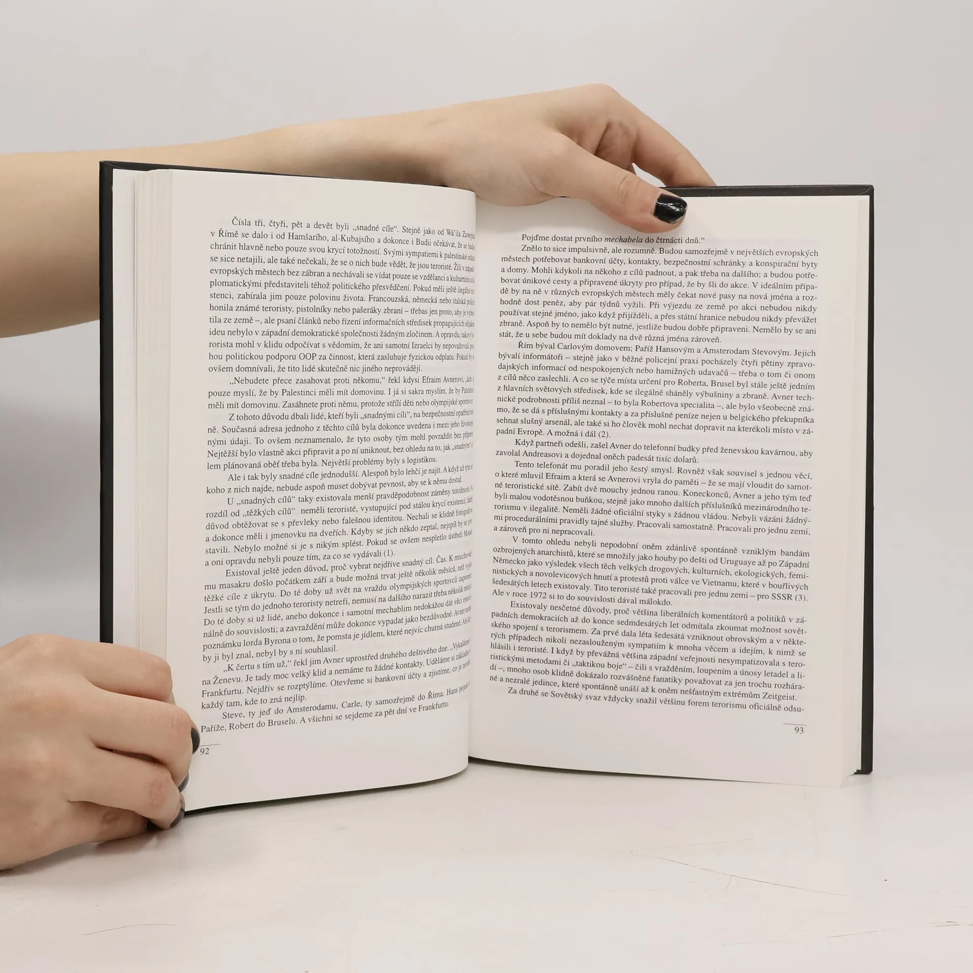 Skutečný příběh jedné izraelské protiteroristické operace. Novodobé olympijské hry, které v roce 1896 obnovily tradici sportovních soutěží ve starověkém Řecku, nesly ušlechtilé poselství antického světa až do 5. září 1972. V ten den, v době konání XX. letních olympijských her v Mnichově, bylo pro většinu civilizovaného světa nepochopitelným způsobem uneseno a vzápětí povražděno jedenáct izraelských sportovců. Teroristickou akci provedla skupina palestinských vrahů působících pod názvem Černé září. Kanadský spisovatel a publicista George Jonas, u nás bohužel svou tvorbou dosud neznámý, napsal na základě vyprávění jednoho z aktérů a po rozsáhlém studiu různorodých pramenů strhující příběh o odvetě, kterou z podnětu izraelské vlády vykonalo několik členů izraelské tajné služby Mosad. Ve svém špionážním románu, mistrné ukázce literatury faktu, popisuje organizaci nejrůznějších palestinských teroristických buněk a frakcí a pootevírá dveře do některých zákoutí evropského podsvětí.