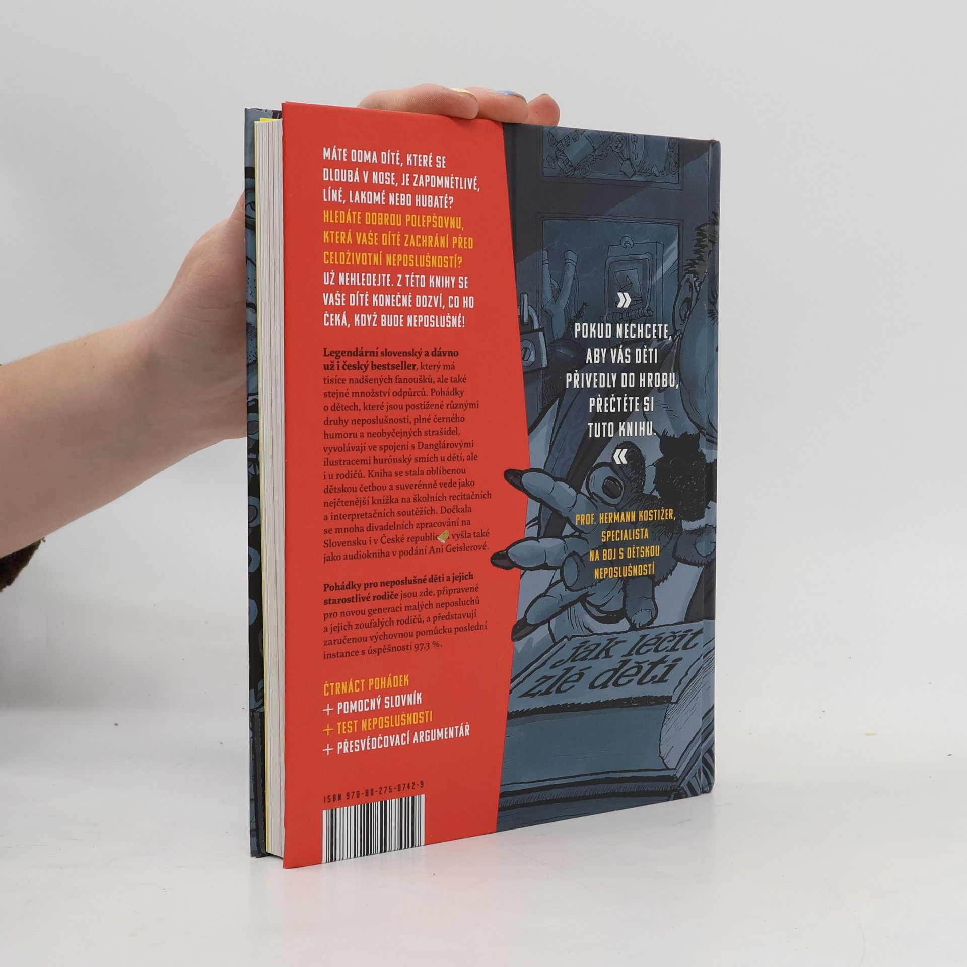 Máte doma dítě, které se dloubá v nose, je zapomnětlivé, líné, lakomé nebo hubaté? Hledáte dobrou polepšovnu, která vaše dítě zachrání před celoživotní neposlušností? Už nehledejte. Z této knihy se vaše dítě konečně dozví, co ho čeká, když bude neposlušné. Legendární slovenský a dávno už i český bestseller, který má tisíce nadšených fanoušků, ale také stejné množství odpůrců. Pohádky o dětech, které jsou postižené různými druhy neposlušnosti, plné černého humoru a neobyčejných strašidel, vyvolávají ve spojení s Danglárovými ilustracemi hurónský smích u dětí, ale i u rodičů. Kniha se stala oblíbenou dětskou četbou a suverénně vede jako nejčtenější knížka na školních recitačních a interpretačních soutěžích. Dočkala se mnoha divadelních zpracování na Slovensku i v České republice a vyšla také jako audiokniha v podání Ani Geislerové. Pohádky pro neposlušné děti a jejich starostlivé rodiče jsou zde, připravené pro novou generaci malých neposluchů a jejich zoufalých rodičů, a představují zaručenou výchovnou pomůcku poslední instance s úspěšností 97,3 %. Čtrnáct pohádek + pomocný slovník + test neposlušnosti + přesvědčovací argumentář.