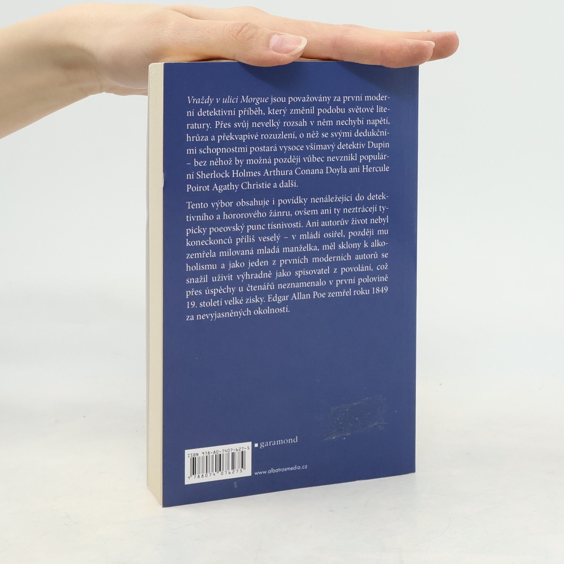 Výbor z pestré povídkové tvorby amerického klasika obsahuje jeho povídky detektivní, hororové, groteskní i satirické. Vraždy v ulici Morgue jsou považovány za první moderní detektivní příběh, který změnil podobu světové literatury. Přes svůj nevelký rozsah v něm nechybí napětí, hrůza a překvapivé rozuzlení, o něž se svými dedukčními schopnostmi postará vysoce všímavý detektiv Dupin, bez něhož by možná později vůbec nevznikl populární Sherlock Holmes Arthura Conana Doyla ani Hercule Poirot Agathy Christie a další. Tento výbor obsahuje i povídky nenáležející do detektivního a hororového žánru, ovšem ani ty neztrácejí typicky poeovský punc tísnivosti. Nakladatelská anotace. Kráceno.