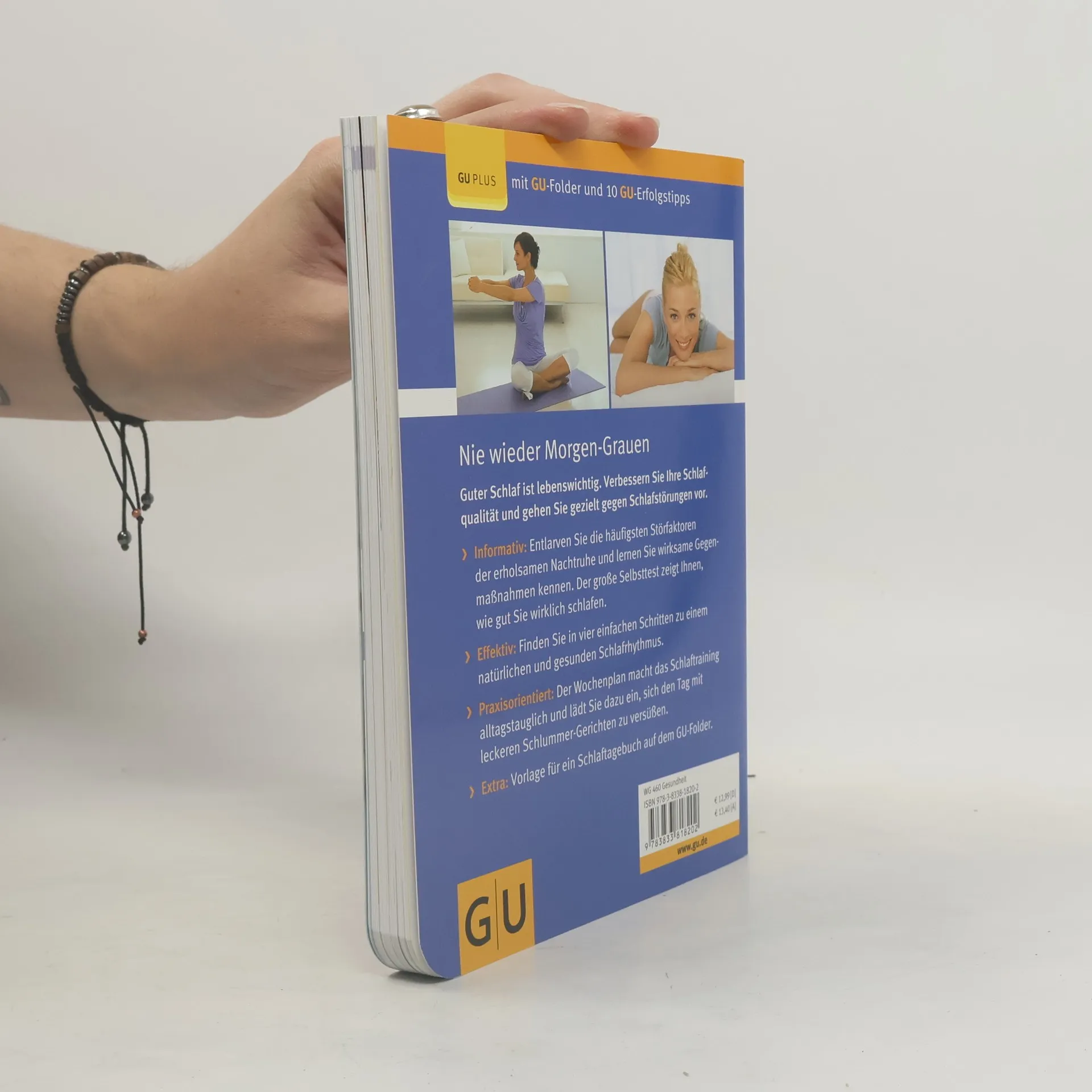 Guter Schlaf ist wichtig für die körperliche und geistige Regeneration, hebt das Glücksgefühl, stärkt das Immunsystem, ist Anti-Aging pur und wirkt insgesamt lebensverlängernd. Jedoch leiden hierzulande rund 40 % aller Menschen gelegentlich oder chronisch unter Schlafstörungen. Abhilfe schafft der GU Ratgeber Der Schlaftrainer. 4 Schritte zu gutem Schlaf. Nach einer fundierten Einführung ins Thema werden die häufigsten Störfaktoren der erholsamen Nachtruhe entlarvt und wirksame Gegenmaßnahmen aufgezeigt. Ein speziell entwickeltes und in der Praxis erprobtes 4-Stufen-Training für guten Schlaf unterstützt Sie dabei, systematisch und Schritt für Schritt zu einem natürlichen und gesunden Schlafrhythmus (zurück-) zu finden. Abgerundet wird das Buch durch ein Wochen-Programm, das Tag für Tag die besten körperlichen und mentalen Übungen und Schlummer-Gerichte aufzeigt. Extra: Vorlage für ein Schlaftagebuch