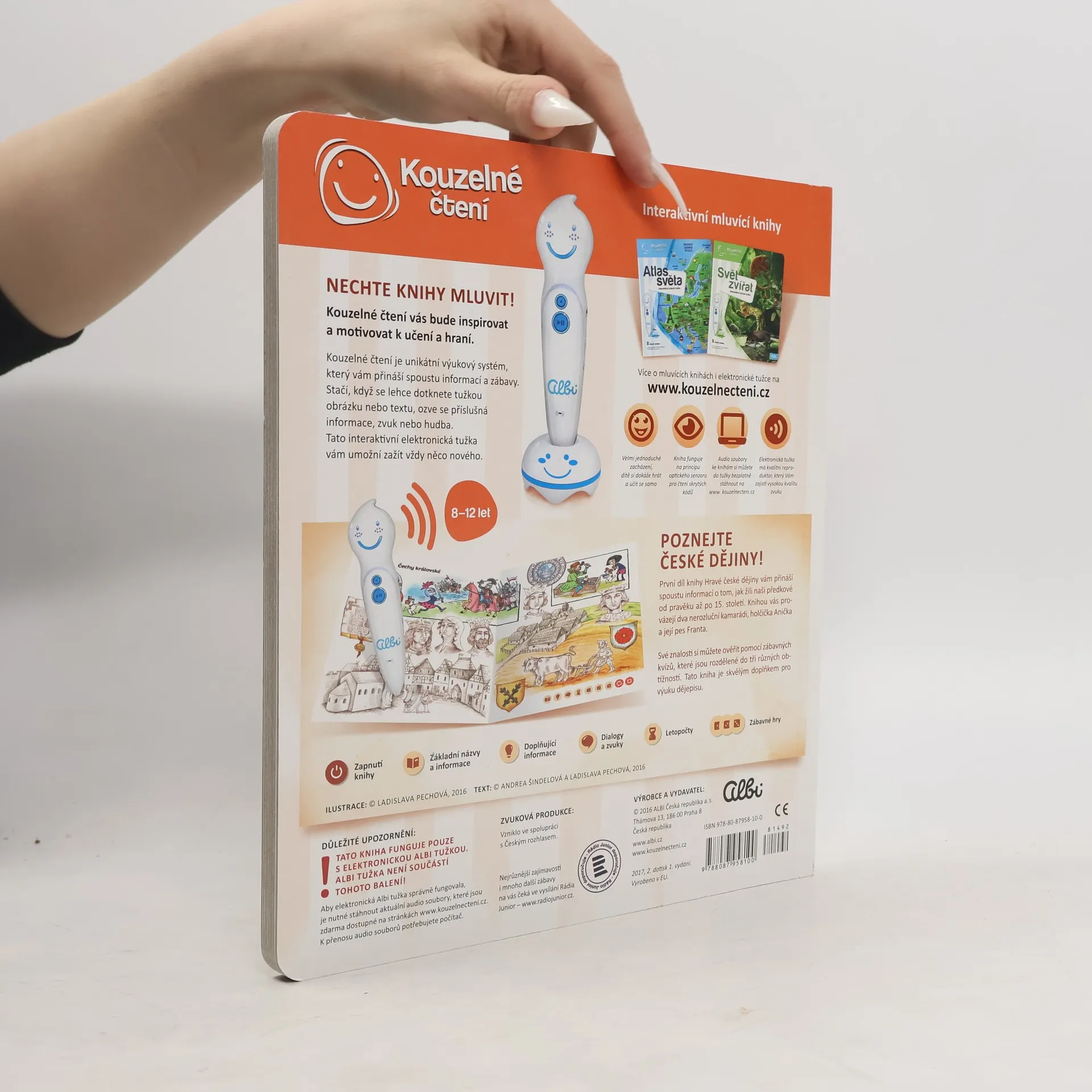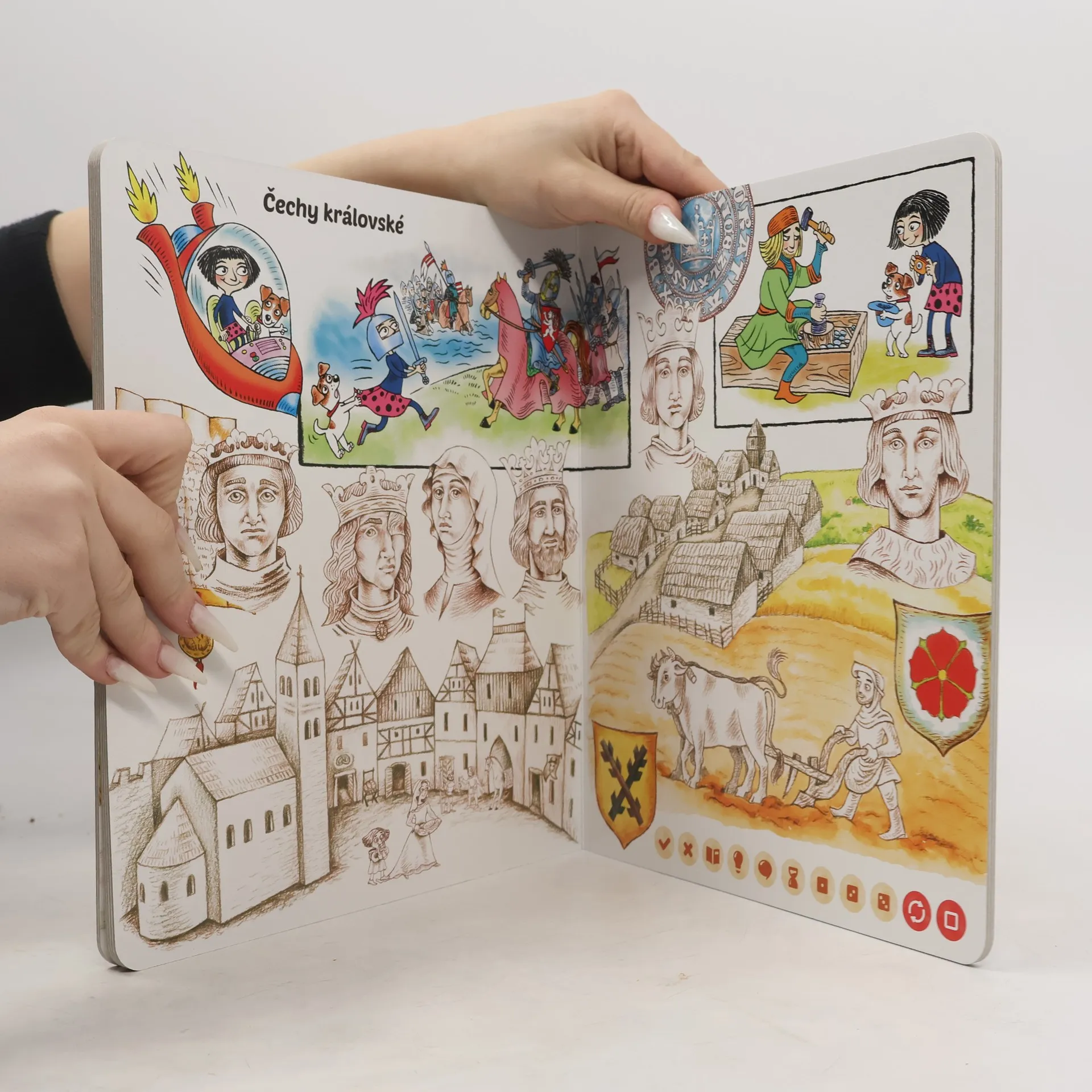 Interaktivní mluvící kniha Hravé české dějiny z edice Kouzelné čtení zabaví děti již od 6 let na dlouhou dobu. Knihu lze zároveň využít jako doplněk pro výuku dějepisu. První díl knihy Hravé české dějiny vám přináší spoustu informací o tom, jak žili naši předkové od pravěkuaž po 15. století. Knihou vás provází dva nerozluční kamarádi - holčička Anička a její pes Franta. V knize nechybí zábavné kvízy, které jsou rozděleny do 3 různých obtížností. Pomocí kvízů si můžete ověřit získané vědomosti. Kniha obsahuje přes 2300 zvuků a textů. Kniha vznikla ve spolupráci s Českým rozhlasem. Namluvili Otakar Brousek ml., Tereza Bebarová a Jana Holcová.