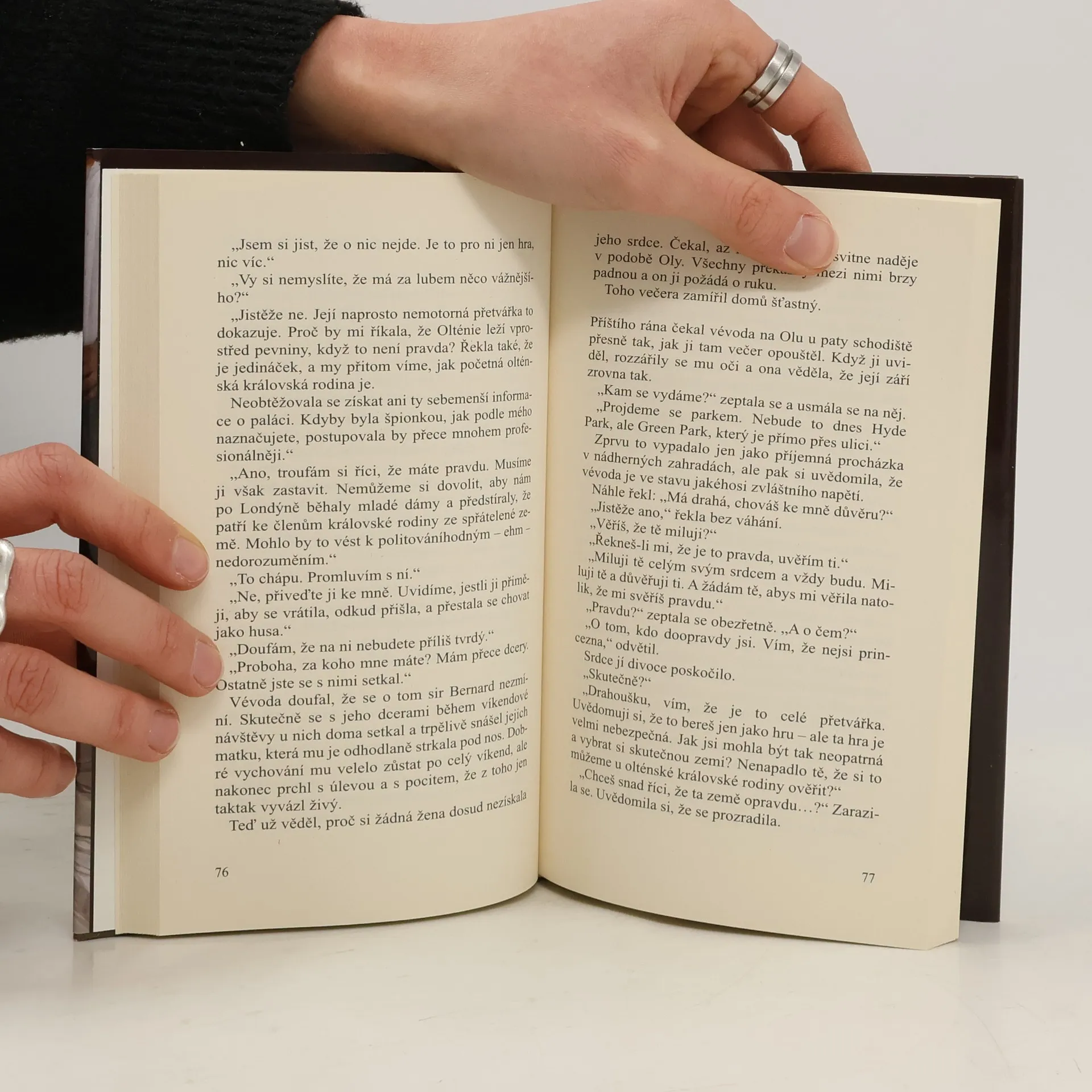 Ola McNewtonová, dcera náčelníka klanu, žije poklidný život po boku svého otce v zapadlé skotské vísce, odkud nikdy nevytáhla paty. Proto se nesmírně těší na výlet do Londýna, kde mají spolu s otcem vzdát hold královně Viktorii na oslavě připomínající, že je královnou již padesát let. Když Olin otec nečekaně zemře, dívka se rozhodne plány neměnit a do Londýna dorazí pouze se svou komornou. Aby si svou první cestu opravdu užila, rozhodne se předstírat, že je balkánskou princeznou. Díky této maškarádě pronikne až do Buckinghamského paláce, kde se jí ujme pohledný vévoda z Camborne. Ola se do okouzlujícího vévody zamiluje – a vytuší, že mu také není lhostejná. Jak by mu teď ovšem mohla prozradit, že lhala o svém původu? Ola ovšem netuší, že si nebezpečně zahrává, a to, co jí zprvu připadalo jako povedený vtip, se jí málem stane osudným. V příběhu plném politických intrik, přetvářky, naděje a zklamání bude muset Ola poznat, co je to pravá láska. Dokáže svému vévodovi ještě někdy důvěřovat?