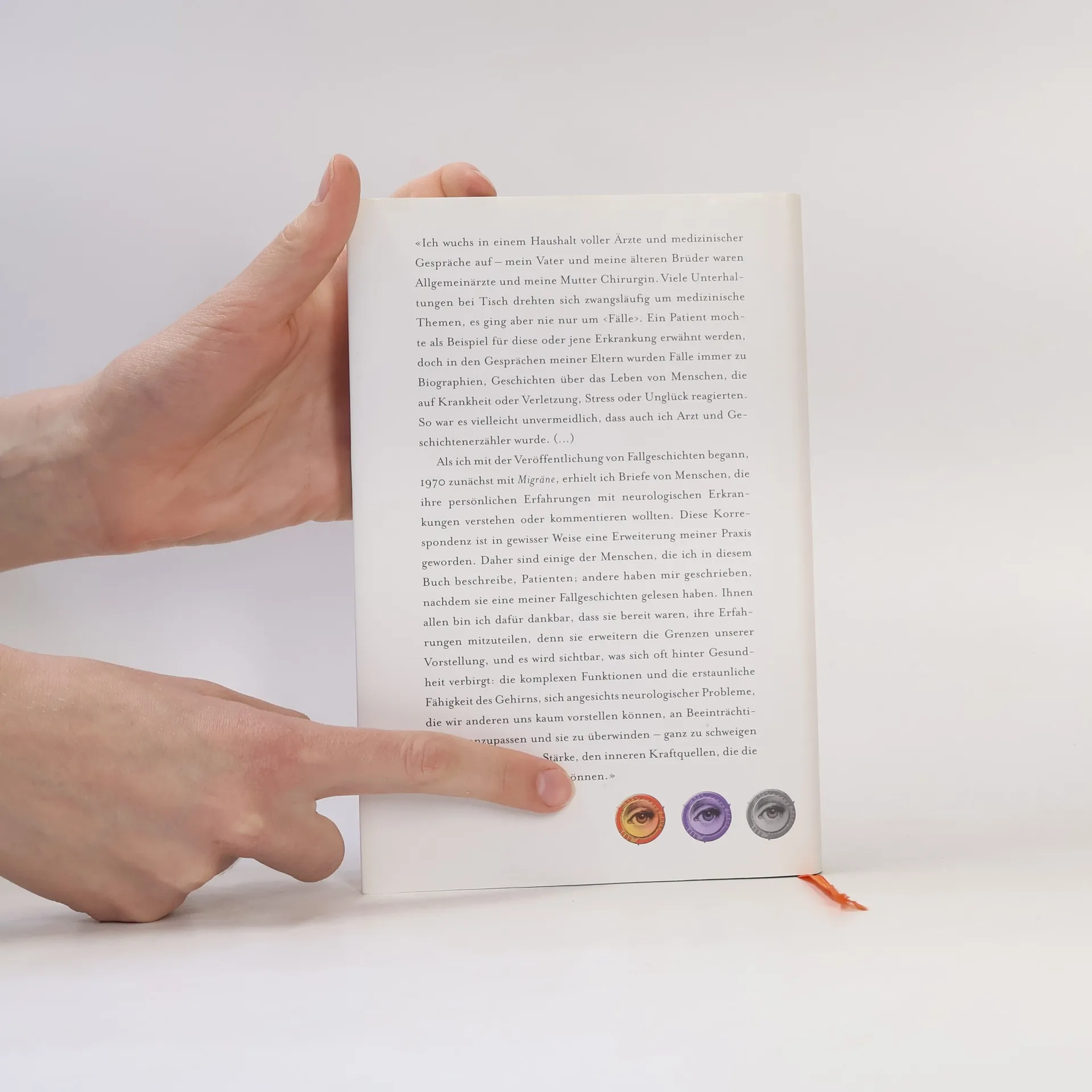 Ich wuchs in einem Haushalt voller Ärzte auf – mein Vater und meine Brüder waren Allgemeinärzte, meine Mutter Chirurgin. Die Gespräche am Tisch drehten sich oft um medizinische Themen, doch es ging nie nur um ‹Fälle›. Patienten wurden nicht nur als Beispiele für Erkrankungen erwähnt, sondern ihre Geschichten wurden zu Biographien über Menschen, die auf Krankheit, Stress oder Unglück reagierten. So wurde es vielleicht unvermeidlich, dass ich Arzt und Geschichtenerzähler wurde. Als ich 1970 begann, Fallgeschichten zu veröffentlichen, erhielt ich Briefe von Menschen, die ihre Erfahrungen mit neurologischen Erkrankungen teilen wollten. Diese Korrespondenz wurde zu einer Erweiterung meiner Praxis. Die Menschen, die ich in diesem Buch beschreibe, sind sowohl Patienten als auch Leser meiner Geschichten. Ich bin ihnen dankbar, dass sie bereit waren, ihre Erfahrungen mitzuteilen, denn sie erweitern unsere Vorstellung von Gesundheit. Es wird sichtbar, was oft hinter Gesundheit verborgen bleibt: die komplexen Funktionen des Gehirns und die erstaunliche Fähigkeit, sich an neurologische Probleme anzupassen und sie zu überwinden. Zudem zeigt sich der Mut und die innere Stärke, die Betroffene mobilisieren können.