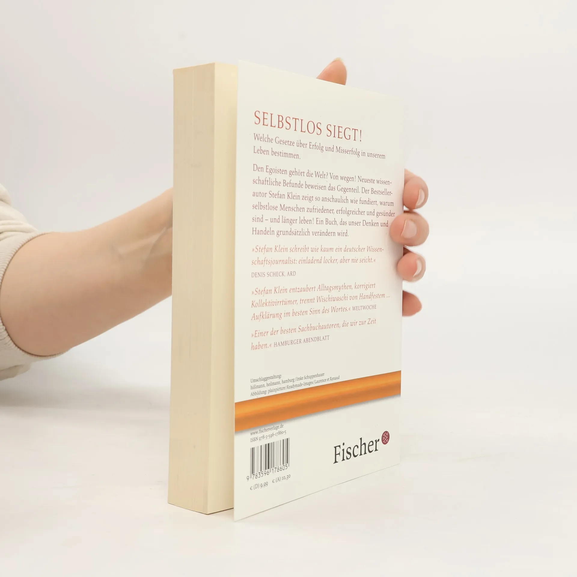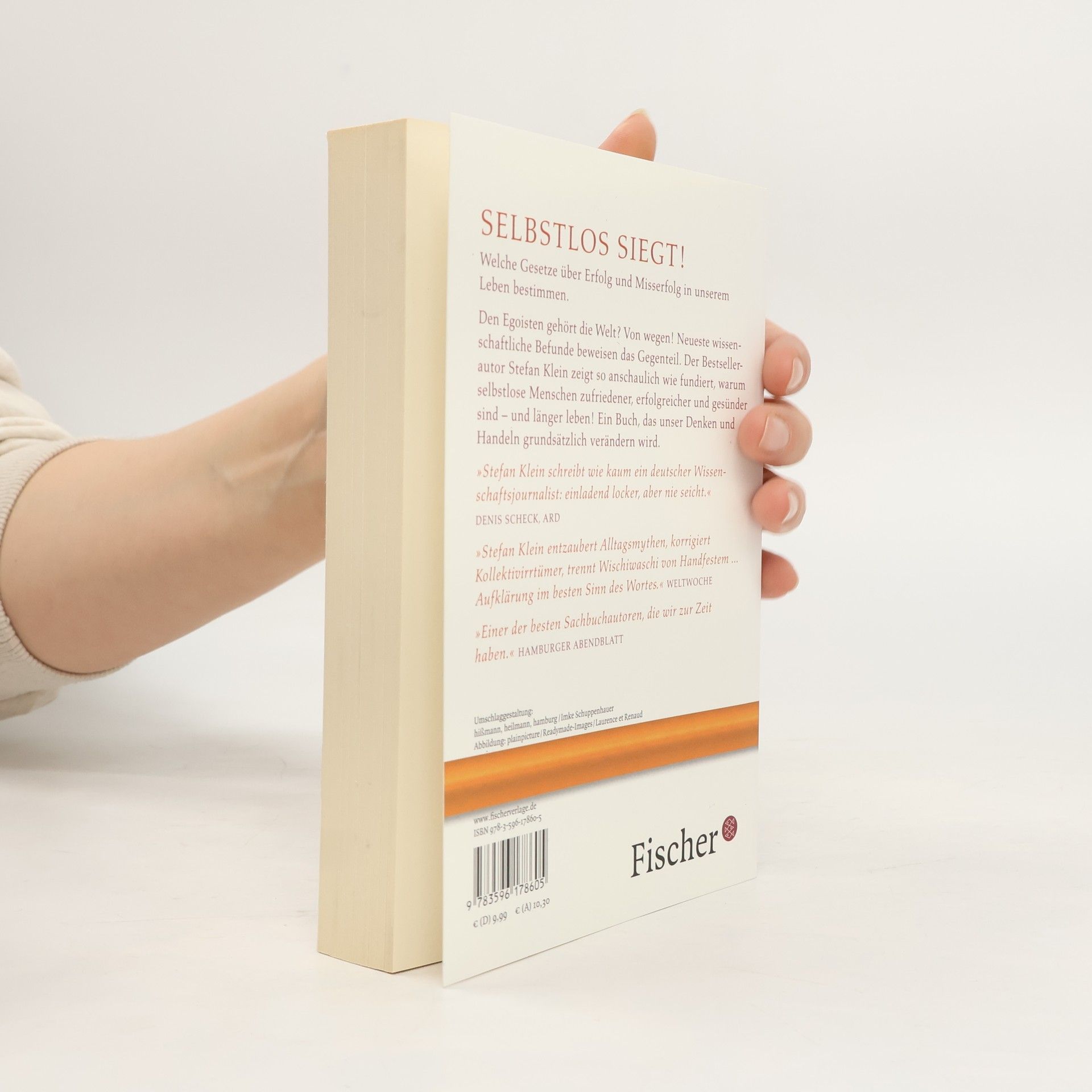 Selbstlos siegt! Welche Gesetze über Erfolg und Misserfolg in unserem Leben bestimmen. Den Selbstlosen gehört die Zukunft: Das ist die erstaunliche Quintessenz des neuen Buches von Stefan Klein, das unser Denken und Handeln verändern wird. Denn die neueste Forschung lässt die Ehrlichen keineswegs als die Dummen dastehen. Entgegen unserem Alltagsglauben schneiden Egoisten nämlich nur kurzfristig besser ab. Auf längere Sicht haben diejenigen Menschen Erfolg, die sich um das Wohl anderer bemühen. Denn nicht nur Wettbewerb, sondern auch Kooperation ist eine Triebkraft der Evolution. Ein Sinn für Gut und Böse ist uns angeboren. Stefan Klein zieht einen faszinierenden Querschnitt durch die aktuellen Ergebnisse der Hirnforschung und der Genetik, der Wirtschaftswissenschaften und der Sozialpsychologie. Er zeigt, welche Gesetze über Erfolg und Misserfolg in unserem Leben bestimmen. Und er stellt dar, warum menschliches Miteinander und das Wohlergehen anderer zu unseren tiefsten Bedürfnissen gehören. Für andere zu sorgen schützt uns nicht nur vor Einsamkeit und Depression. Vielmehr macht uns Selbstlosigkeit glücklicher und erfolgreicher – und beschert uns nachweislich sogar ein längeres Leben.