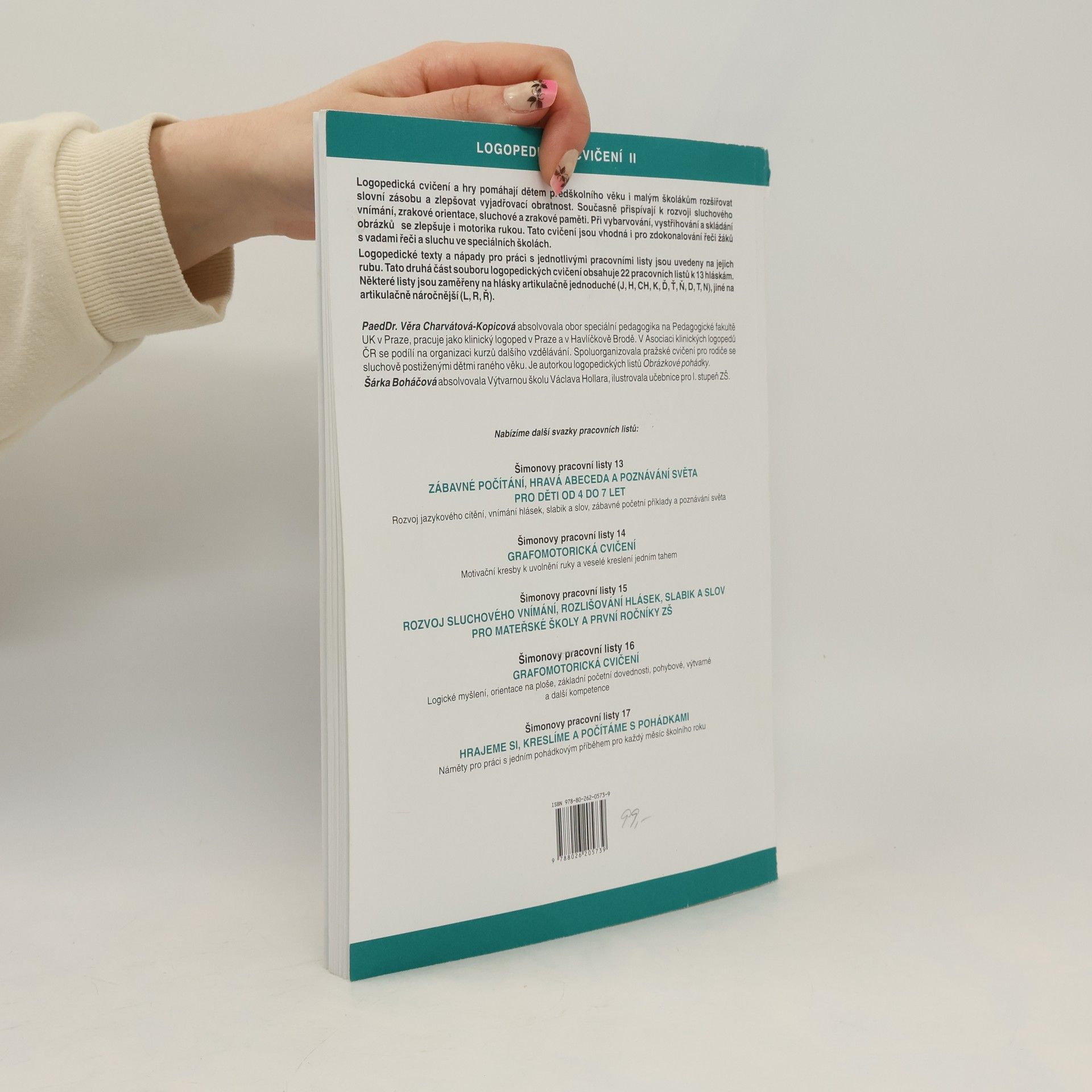 Logopedická cvičení II. Kniha obsahuje i předlohy pro kopírování. Logopedická cvičení - soubor druhý, napomáhá dětem předškolního věku i malým školákům rozšiřovat slovní zásobu, zlepšovat vyjadřovací obratnost a přispívá k rozvoji sluchového vnímaní, zrakové orientace, sluchové i zrakové paměti.