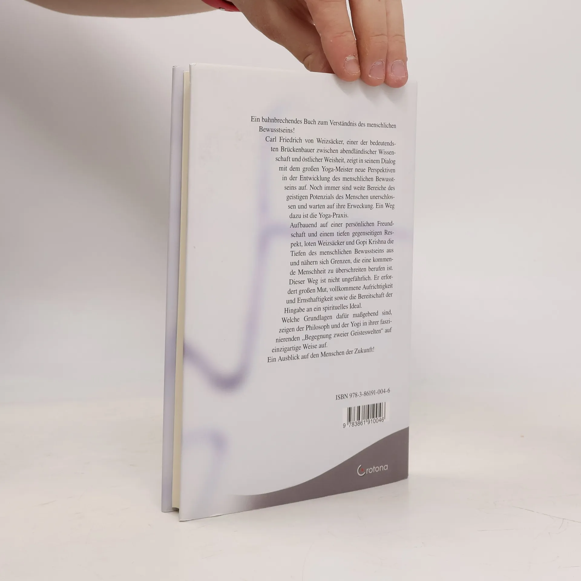 Ein bahnbrechendes Buch zum Verständnis des menschlichen Bewusstseins! Carl Friedrich von Weizsäcker, einer der bedeutendsten Brückenbauer zwischen abendländischer Wissenschaft und östlicher Weisheit, zeigt in seinem Dialog mit dem großen Yoga-Meister neue Perspektiven in der Entwicklung des menschlichen Bewusstseins auf. Noch immer sind weite Bereiche des geistigen Potenzials des Menschen unerschlossen und warten auf ihre Erweckung. Ein Weg dazu ist die Yoga-Praxis. Aufbauend auf einer persönlichen Freundschaft und einem tiefen gegenseitigen Respekt, loten Weizsäcker und Gopi Krishna die Tiefen des menschlichen Bewusstseins aus und nähern sich Grenzen, die eine kommenden Menschheit zu überschreiten berufen ist. Dieser Weg ist nicht ungefährlich. Er erfordert großen Mut, vollkommene Aufrichtigkeit und Ernsthaftigkeit sowie die Bereitschaft der Hingabe an ein spirituelles Ideal. Welche Grundlagen dafür maßgebend sind, zeigen der Philosoph und der Yogi in ihrer faszinierenden „Begegnung zweier Geisteswelten“ auf einzigartige Weise auf. Ein Ausblick auf den Menschen der Zukunft!