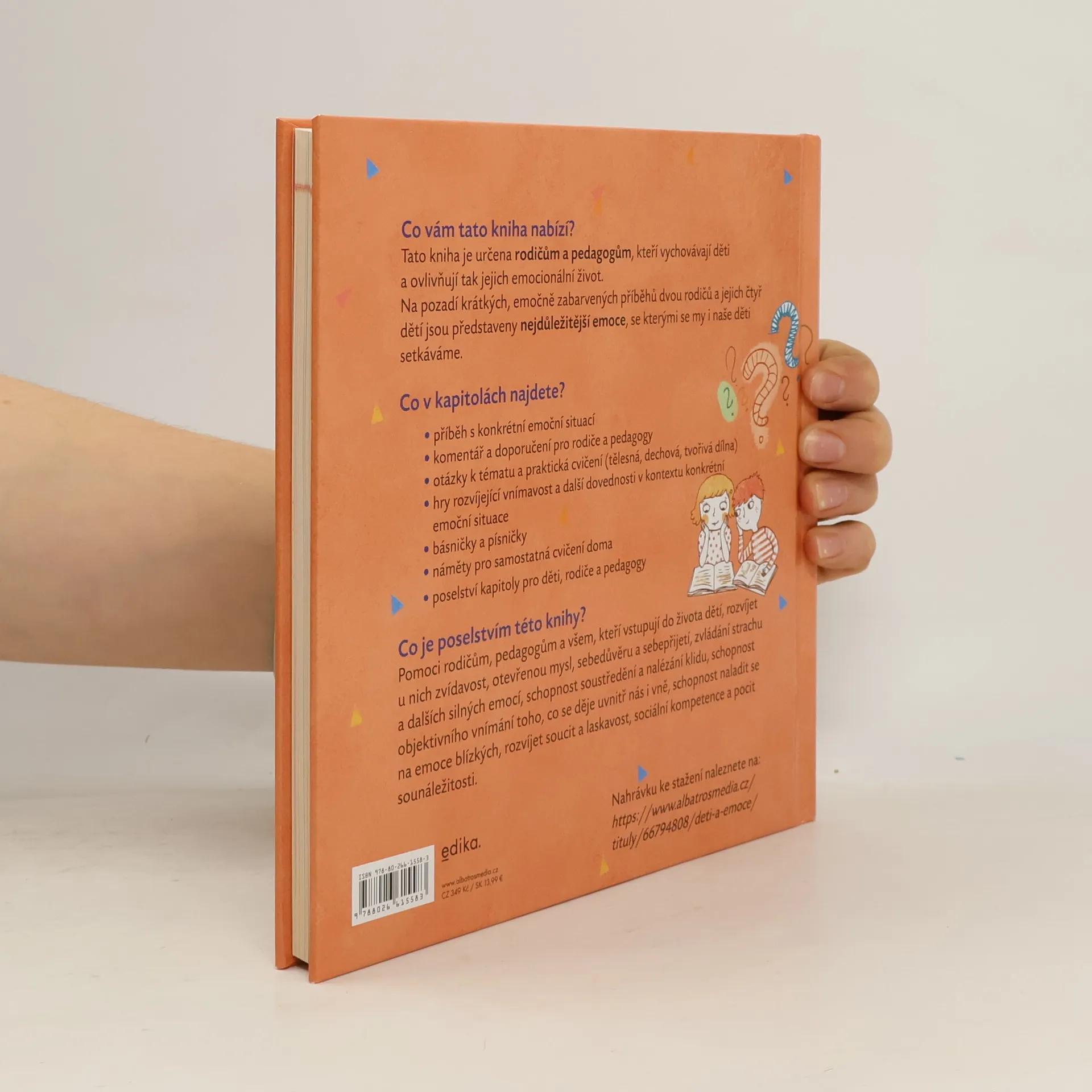 Tato kniha je určena rodičům a pedagogům, kteří vychovávají děti a ovlivňují tak jejich emocionální život. Na pozadí krátkých, emočně zabarvených příběhů dvou rodičů a jejich čtyř dětí jsou představeny nejdůležitější emoce, se kterými se my i naše děti setkáváme. Příběha doplňují interaktivní cvičení, rady, návody k hrám a dalším aktivitám, kterým je možno se věnovat jak doma, tak v mateřských a základních školách.