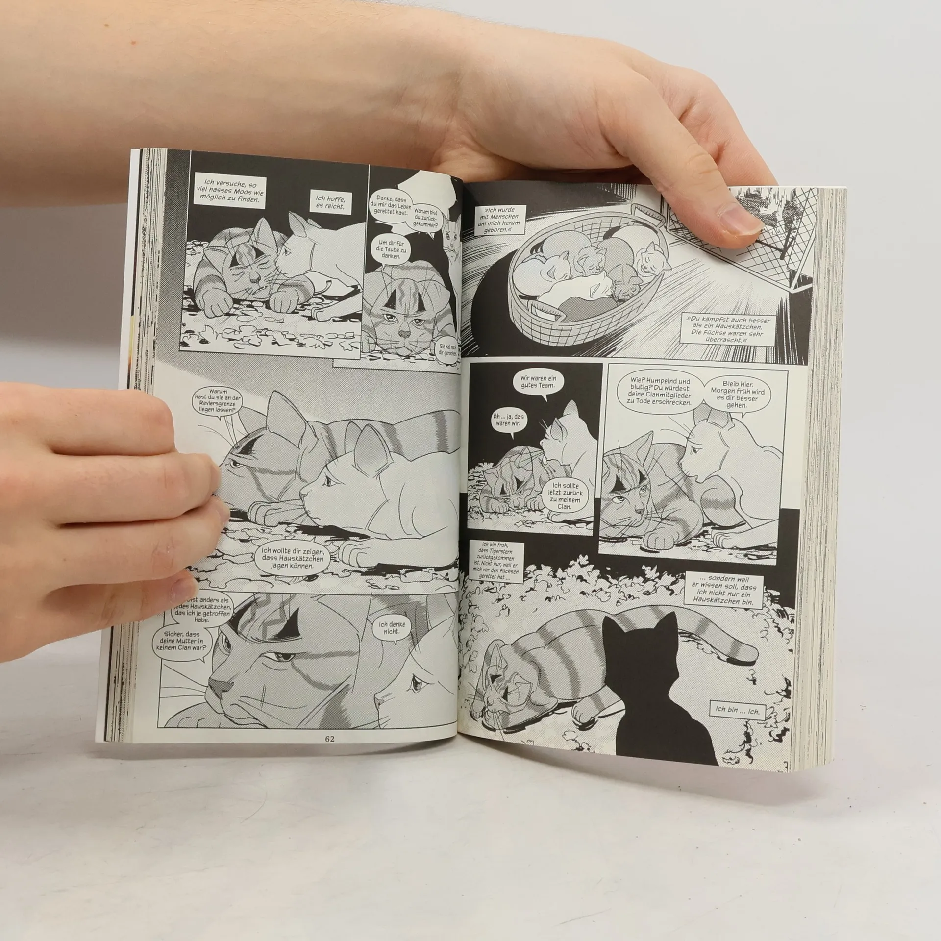 Die Hauskatze Sasha wird tagsüber von ihren Menschen verwöhnt und kann nachts frei durch die Wälder streifen. Aber eines Tages ist Sasha gezwungen, ihr glückliches Zuhause zu verlassen, und ein Leben in der Wildnis zu führen. Doch was zunächst neu und aufregend scheint, wird schnell zu einem einsamen Überlebenskampf. Als sie Tigerstern, einen starken Krieger und Anführer des SchattenClans, kennenlernt, nimmt ihr Leben erneut eine schicksalhafte Wendung … Die Warrior Cats im Reich des SchattenClans! Die erfolgreiche Romanserie Warrior Cats von Erin Hunter gehört schon lange zu den Dauersellern im All-Age-Bereich. TOKYOPOP legt nun endlich die drei darauf basierenden Comic-Trilogien komplett in deutscher Sprache vor. In actionreichen, emotionalen Erzählungen geben die Sammelbände Antworten auf bislang unbeantwortete Fragen aus den Büchern.