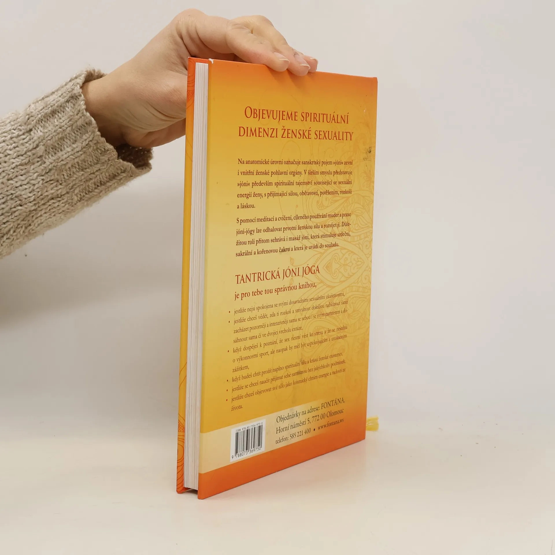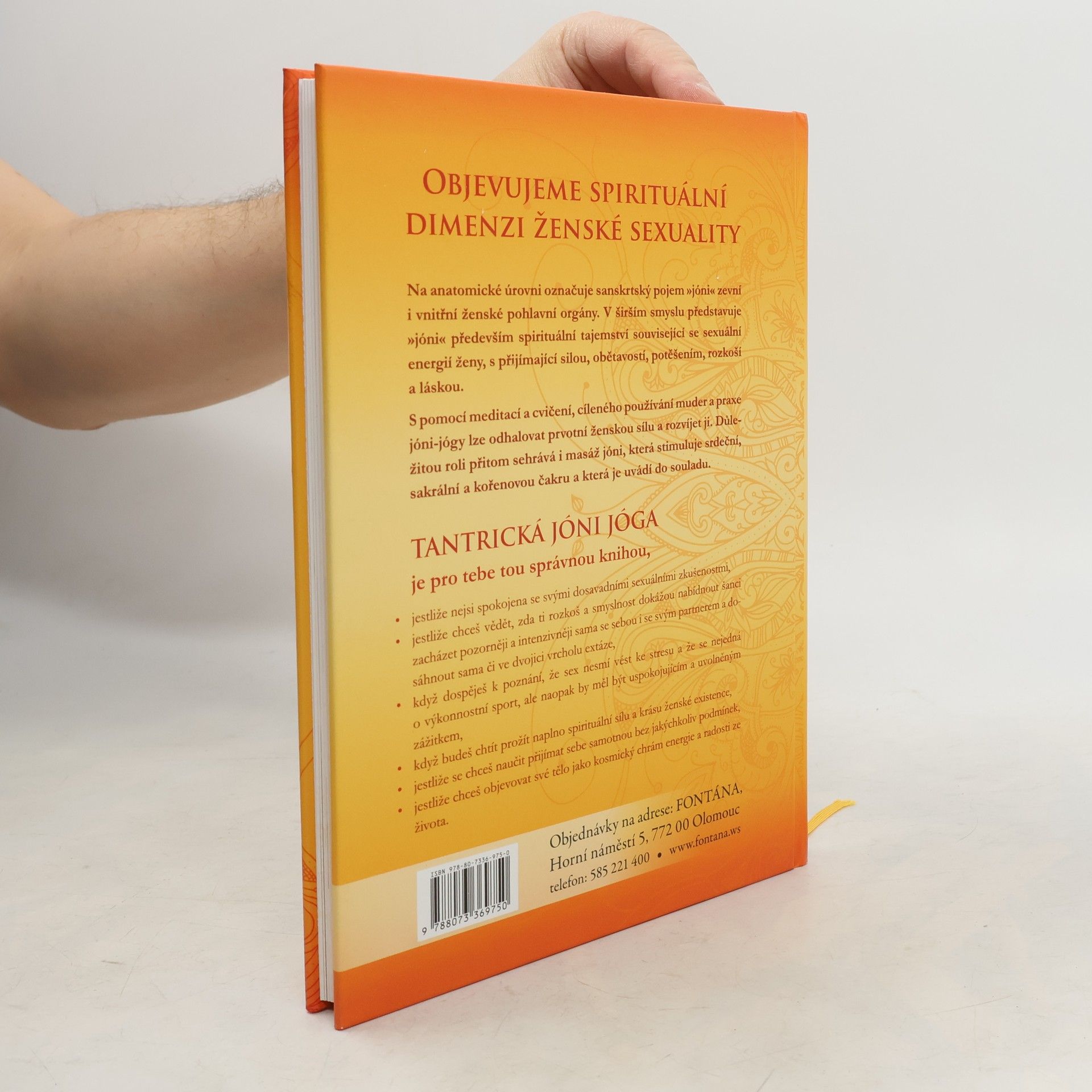 Objevujeme spirituální dimenzi ženské sexuality. Na anatomické úrovni označuje sanskrtský pojem »jóni« zevní i vnitřní ženské pohlavní orgány. V širším smyslu představuje »jóni« především spirituální tajemství související se sexuální energií ženy, s přijímající silou, obětavostí, potěšením, rozkoší a láskou. S pomocí meditací a cvičení, cíleného používání muder a praxe jóni-jógy lze odhalovat prvotní ženskou sílu a rozvíjet ji. Důležitou roli přitom sehrává i masáž jóni, která stimuluje srdeční, sakrální a kořenovou čakru a která je uvádí do souladu. Tantrická JÓNI jóga je pro tebe tou správnou knihou, jestliže nejsi spokojena se svými dosavadními sexuálními zkušenostmi, jestliže chceš vědět, zda ti rozkoš a smyslnost dokážou nabídnout šanci zacházet pozorněji a intenzivněji sama se sebou i se svým partnerem a dosáhnout sama či ve dvojici vrcholu extáze, když dospěješ k poznání, že sex nesmí vést ke stresu a že se nejedná o výkonnostní sport, ale naopak by měl být uspokojujícím a uvolněným zážitkem, když budeš chtít prožít naplno spirituální sílu a krásu ženské existence, jestliže se chceš naučit přijímat sebe samotnou bez jakýchkoliv podmínek, jestliže chceš objevovat své tělo jako kosmický chrám energie a radosti ze života.