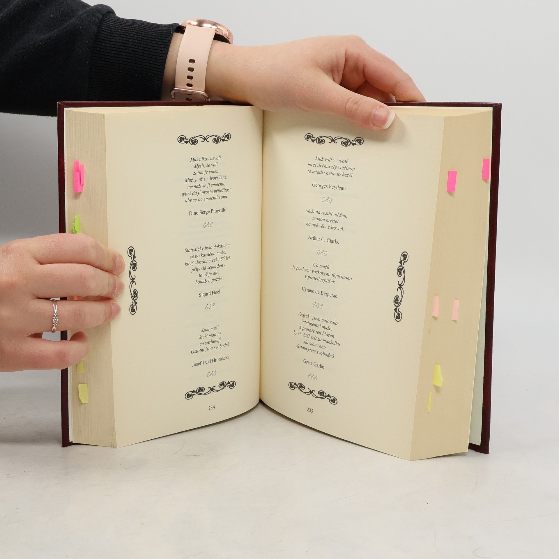 Kniha sestavená z citátů o lásce, ženách, mužích, manželství a životě, rozdělená do 5 tématických částí