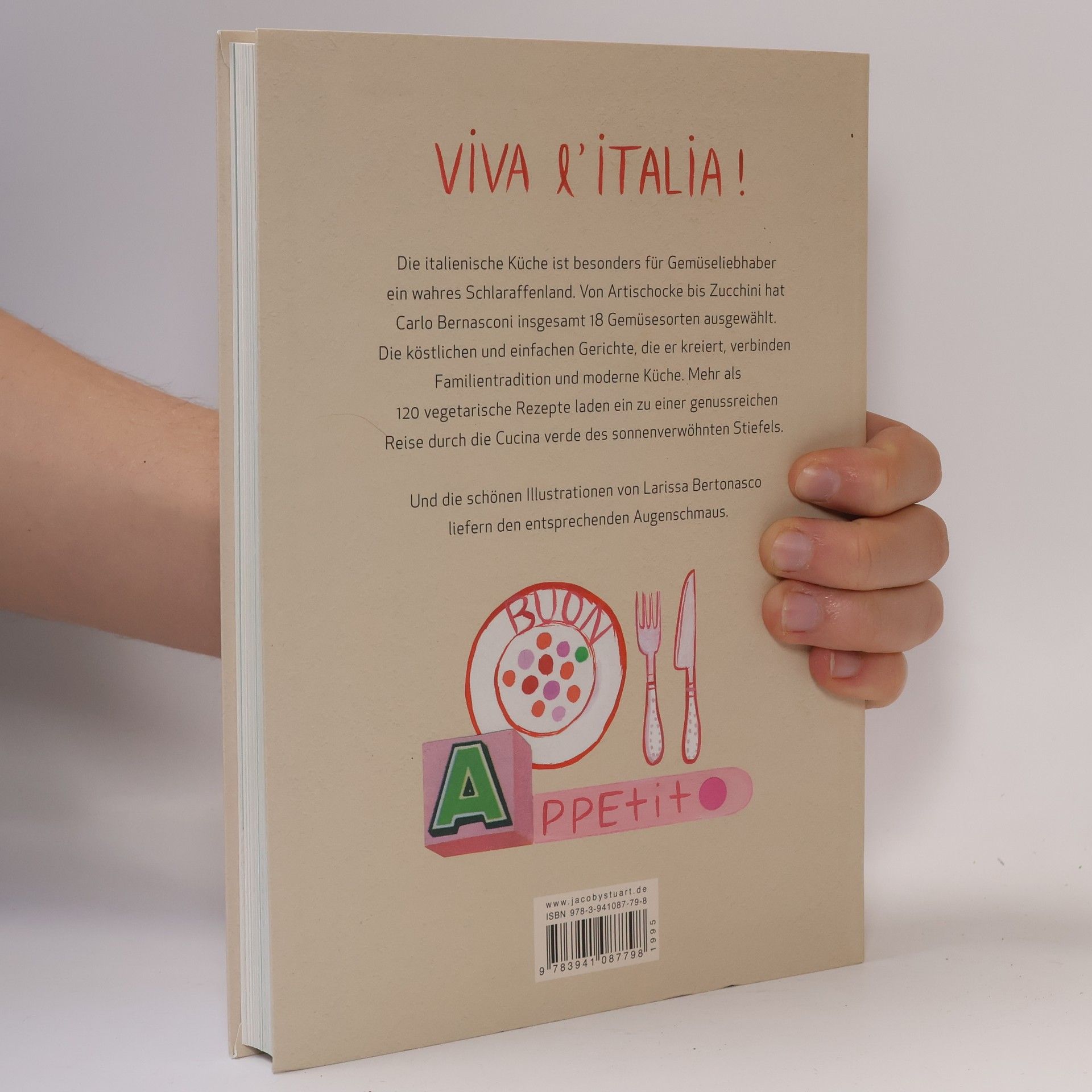 Im sonnenverwöhnten Italien gedeihen rund ums Jahr zahllose Gemüsesorten, die von Bozen bis Palermo auf vielfältige Weise zubereitet werden. Von Artischocke bis Zucchini hat Carlo Bernasconi insgesamt achtzehn Gemüsesorten ausgewählt, mit denen in Italien gern gekocht wird. Er erklärt die Bedeutung und Verwendung der einzelnen Gemüse und lässt dabei auch persönliche Erinnerungen an die Küche seiner Nonna und seiner Mamma einfließen. Die sinnlichen Illustrationen von Larissa Bertonasco fangen den bunten Reigen der Gemüsesorten ein und wecken Italien-Sehnsüchte. Vor das Kochen und Schmausen hat sie den Augenschmaus gesetzt.