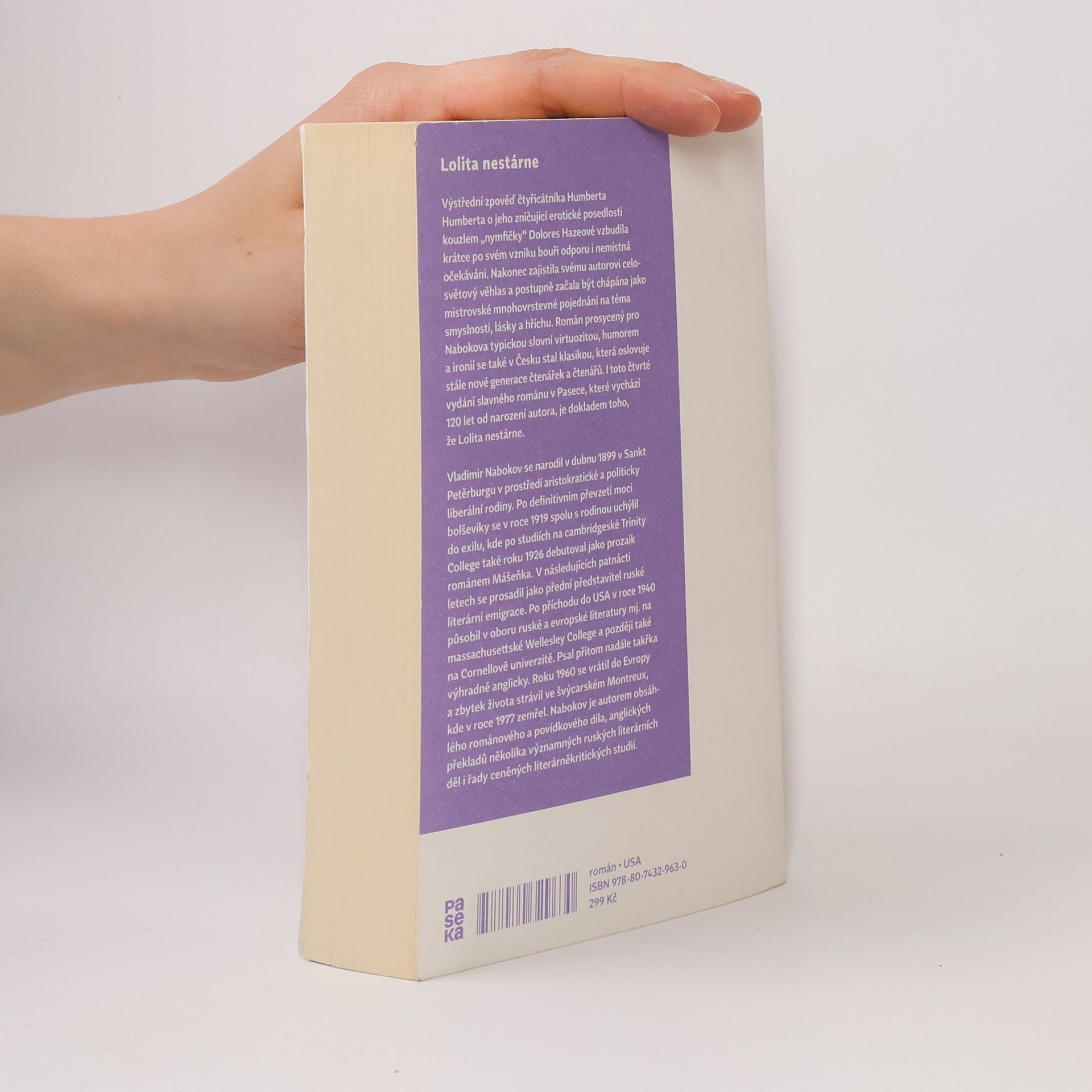 Nové vydání Lolity k výročí 120 let od narození Vladimira Nabokova. Čtyři varianty obálky, liší se pouze ilustrací. ISBN zůstává stejné pro všechny čtyři varianty. Výstřední zpověď čtyřicátníka Humberta Humberta o jeho zničující erotické posedlosti kouzlem „nymfičky“ Dolores Hazeové vzbudila krátce po svém vzniku bouři odporu i nemístná očekávání. Nakonec zajistila svému autorovi celosvětový věhlas a postupně začala být chápána jako mistrovské mnohovrstevné pojednání na téma smyslnosti, lásky a hříchu. Román prosycený pro Nabokova typickou slovní virtuozitou, humorem a ironií se také v Česku stal klasikou, která oslovuje stále nové generace čtenářek a čtenářů. I toto čtvrté vydání slavného románu v Pasece je dokladem toho, že Lolita nestárne.