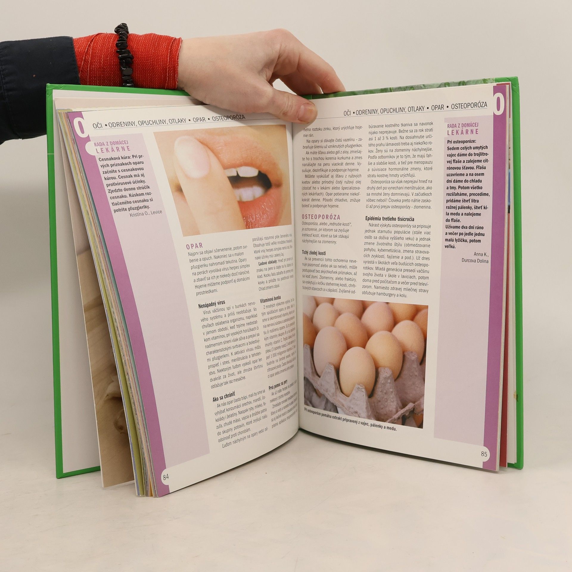 Overené rady a recepty čitateľov týždenníka Život. Kniha obsahuje užitočné rady, praktické tipy a účinné recepty z domácej lekárne od čitateľov, ktorí ich viac ako rok zasielali do redakcie. V 21 kapitolách nájdete jednoduché a cenovo nenáročné recepty z dostupných surovín, ktoré pomáhajú pri bežných ochoreniach a neduhoch. Všetky návody na prípravu balzamov, tinktúr, extraktov a mastičiek z domácej lekárne sú naozaj overené-autori receptov ich vyskúšali najprv sami na sebe. Rady v kapitolách: Alergia, Alkohol, Aloa, Angína, Arómaterapia, Bachova kvetová terapia, Bolesť, Buriny, Bylinky, Celulitída, Cievy, Čkanie, Depresia, Dutiny, Detoxikačné zmesi, Domáca lekáreň, Ekzémy, Energia, Farby, Hlava, Chren, Chrípka, Infekcia močových ciest, Jarná únava, Kašeľ, Klimaktérium, Kĺby, Kurie oko, Kŕčové žily, Letná očista, Liečivý čaj, Lupienka, Lymfatický systém, Ľad, Masáže, Med, Menštruačné bolesti, Mesiac, Nohy, Oči, Odreniny, opuchliny, otlaky, Opar, Osteoporóza, Plesne, Potenie, Prechladnutie, Pyramídy, Regenerácia pleti, Salmonelóza, Soľ, Spánok, Srdce, Stres, Surová strava, Tuky, Útlm, Vlasy, Vyrážky, Zlatá žila, Žalúdok, Žlčník. Prvé vydanie.