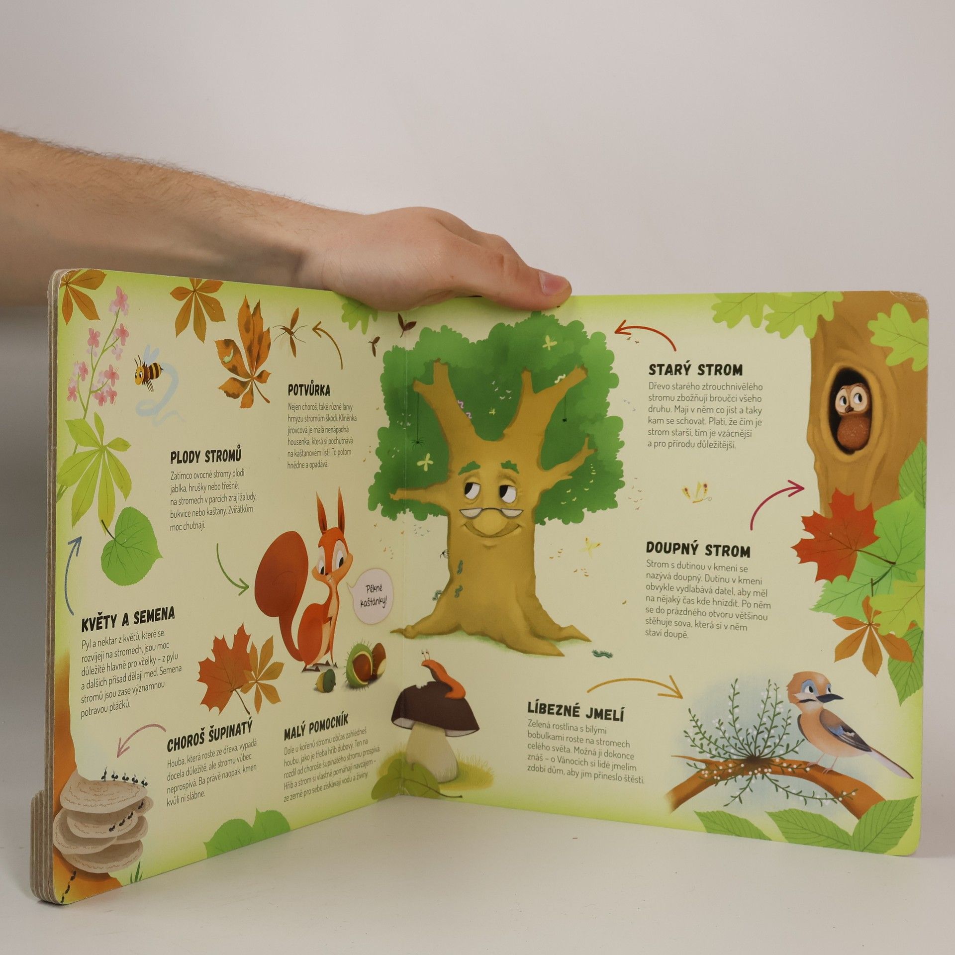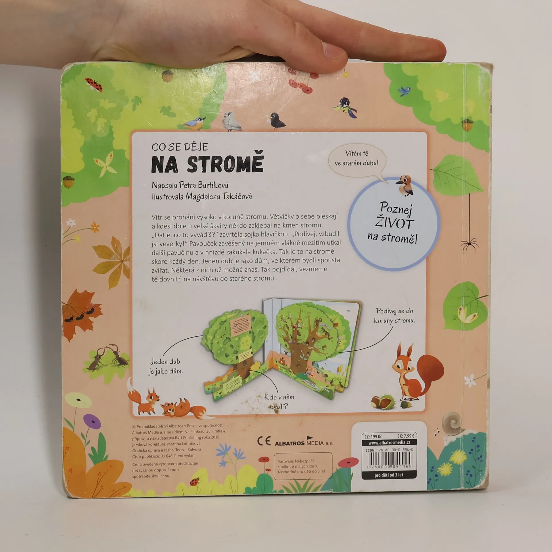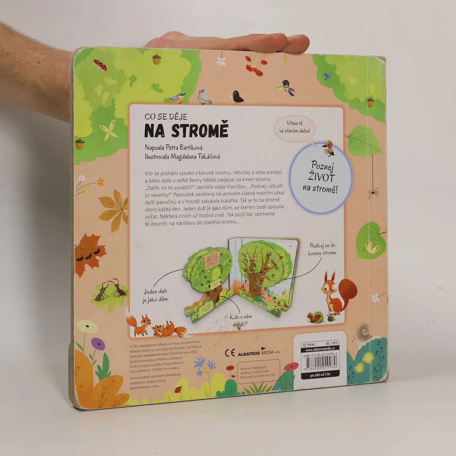 Poznej život na stromě! Vítr se prohání vysoko v koruně stromu. Větvičky o sebe pleskají a kdesi dole u velké škvíry někdo zaklepal na kmen stromu. „Datle, co to vyvádíš?“ zavrtěla sojka hlavičkou. „Podívej, vzbudil jsi veverky!“ Pavouček zavěšený na jemném vlákně mezitím utkal další pavučinu a v hnízdě zakukala kukačka. Tak je to na stromě skoro každý den. Jeden dub je jako dům, ve kterém bydlí spousta zvířat. Některá z nich už možná znáš. Tak pojď dál, vezmeme tě dovnitř, na návštěvu do starého stromu…