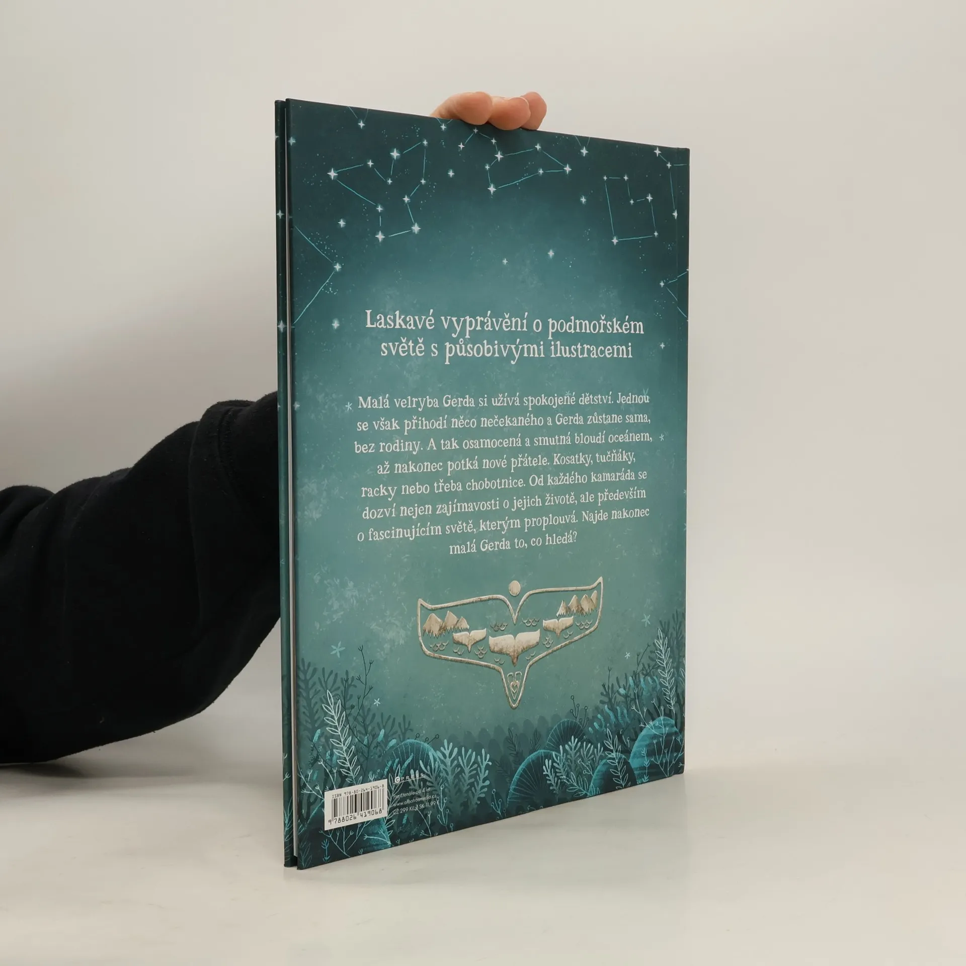 Laskavé vyprávění o podmořském světě s působivými ilustracemi. Malá velryba Gerda si užívá spokojené dětství. Jednou se však přihodí něco nečekaného a Gerda zůstane sama, bez rodiny. A tak osamocená a smutná bloudí oceánem, až nakonec potká nové přátele. Kosatky, tučňáky, racky nebo třeba chobotnice. Od každého kamaráda se dozví nejen zajímavosti o jejich životě, ale především o fascinujícím světě, kterým proplouvá. Najde nakonec malá Gerda to, co hledá?
