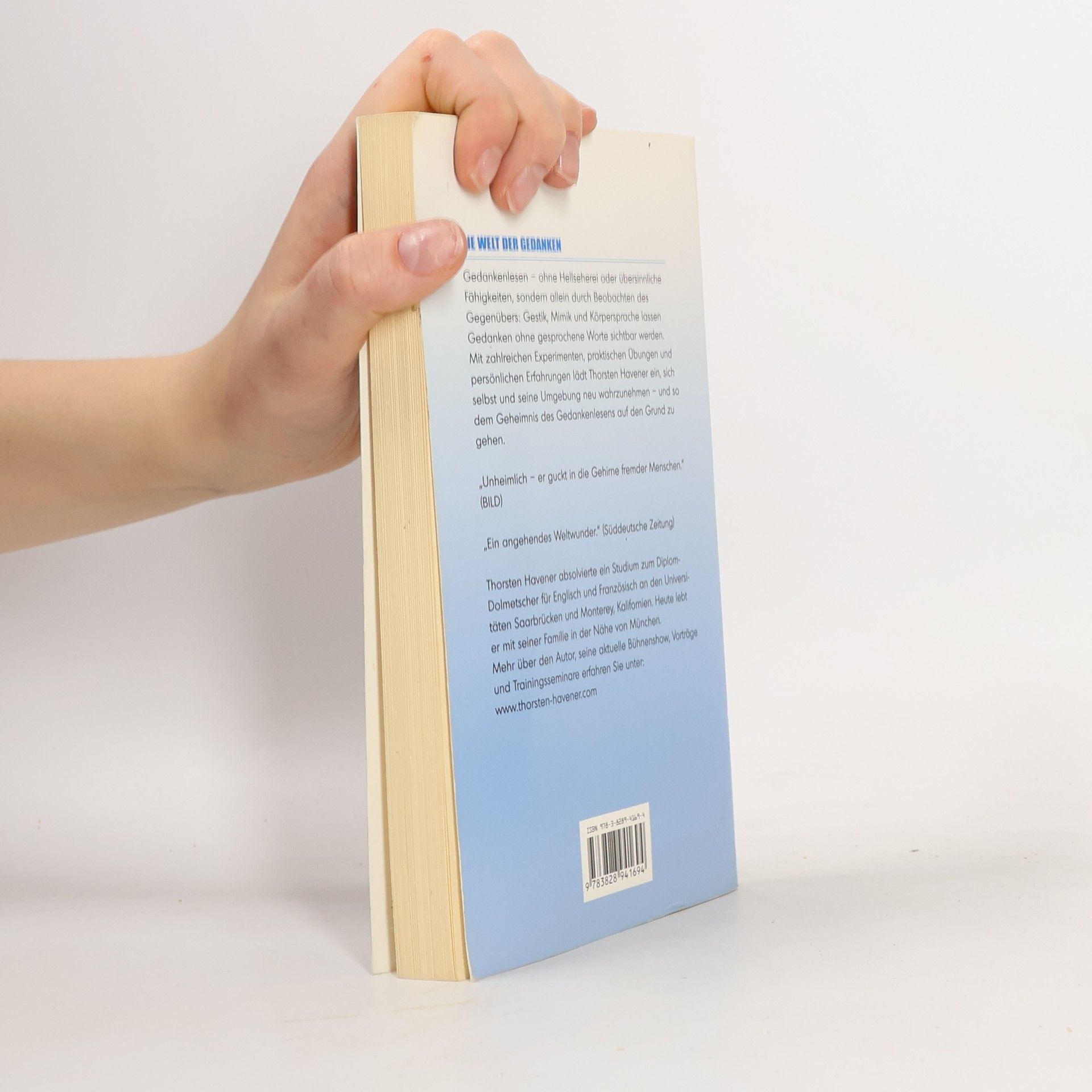 Die Welt der Gedanken «Immer wieder werde ich gefragt: ‹Wie machen Sie das eigentlich, Herr Havener?› Eine berechtigte Neugier – und doch liegt in der Antwort zugleich mein gesamtes Geschäftskapital. Trotzdem möchte ich in diesem Buch einige meiner wichtigsten Techniken der Allgemeinheit zur Verfügung stellen, meine Werkzeugkiste mentaler Instrumente öffnen und zeigen, wie diese Methoden auch im Alltag anwendbar sind ...» Der bekannteste Gedankenleser Deutschlands gewährt hier einen spannenden Einblick in die Grundlagen des effizienten Beobachtens, Denkens und Einschätzens, um die Gedanken anderer Menschen zu erahnen. Schritt für Schritt. Gedankenlesen – ohne Hellseherei oder übersinnliche Fähigkeiten, sondern allein durch Beobachten des Gegenübers: Gestik, Mimik und Körpersprache lassen Gedanken ohne gesprochene Worte sichtbar werden. Mit zahlreichen Experimenten, praktischen Übungen und persönlichen Erfahrungen lädt Thorsten Havener ein, sich selbst und seine Umgebung neu wahrzunehmen – und so dem Geheimnis des Gedankenlesens auf den Grund zu gehen. «Unheimlich – er guckt in die Gehirne fremder Menschen.» (BILD) «Ein angehendes Weltwunder.» (Süddeutsche Zeitung) «Ein genialer Menschenbeobachter.» (Münchner Merkur) «Wirklich phantastisch, absolut überzeugend und faszinierend.» (Jan Hofer)