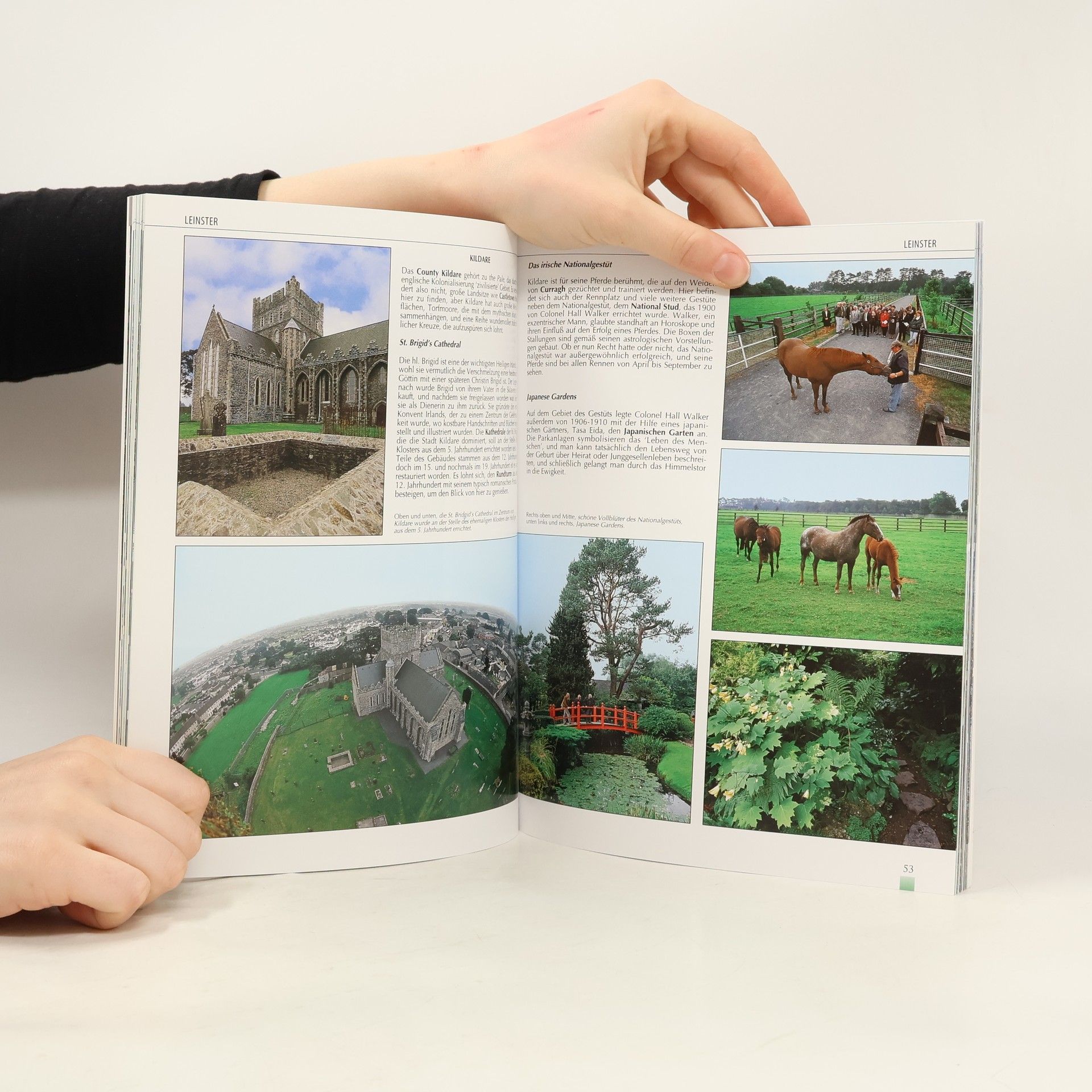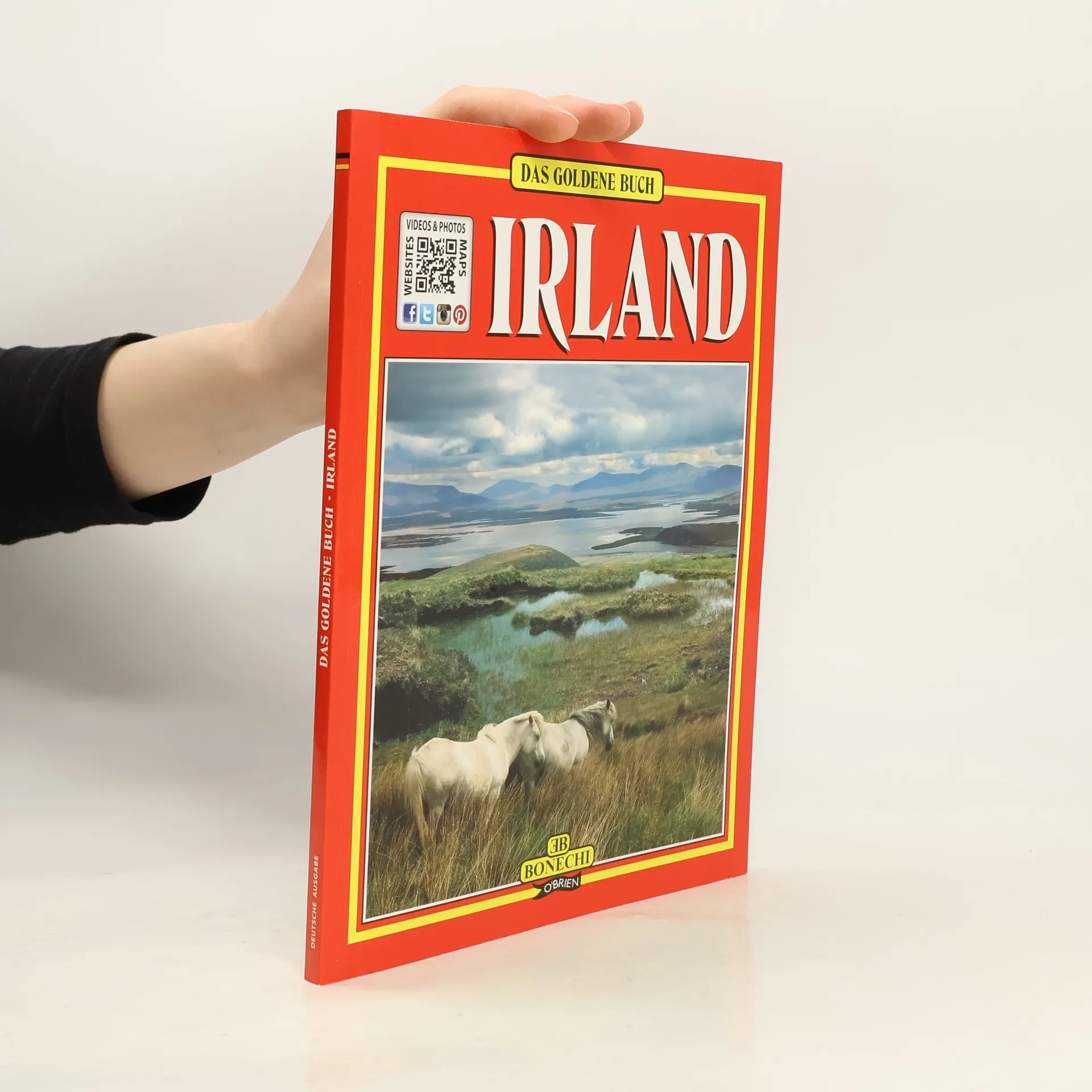 German language edition: over 200 stunning original photographs of Ireland, North and South, featuring its historic places, monuments, breathtaking scenery, the people, fairs and festivals. Each photograph is accompanied by fact-filled, informative text on the history, legend, lives and customs covered by the pictures. With QR codes throughout providing links to a wide range of internet content, from videos and facebook groups to photographs and travel sites. The book takes you on a county by county tour of Ireland, visiting all the major tourist attractions: The Rock of Cashel, The Cliffs of Moher, The Giant's Causeway, Trinity College, Bunratty Castle, as well as illustrating unique features for which the Irish landscape is famous, such as thatched cottages, stone walls and round towers. The perfect accompaniment to a visit to Ireland and the ideal souvenir to take home. Also available in French, Italian, Spanish and English