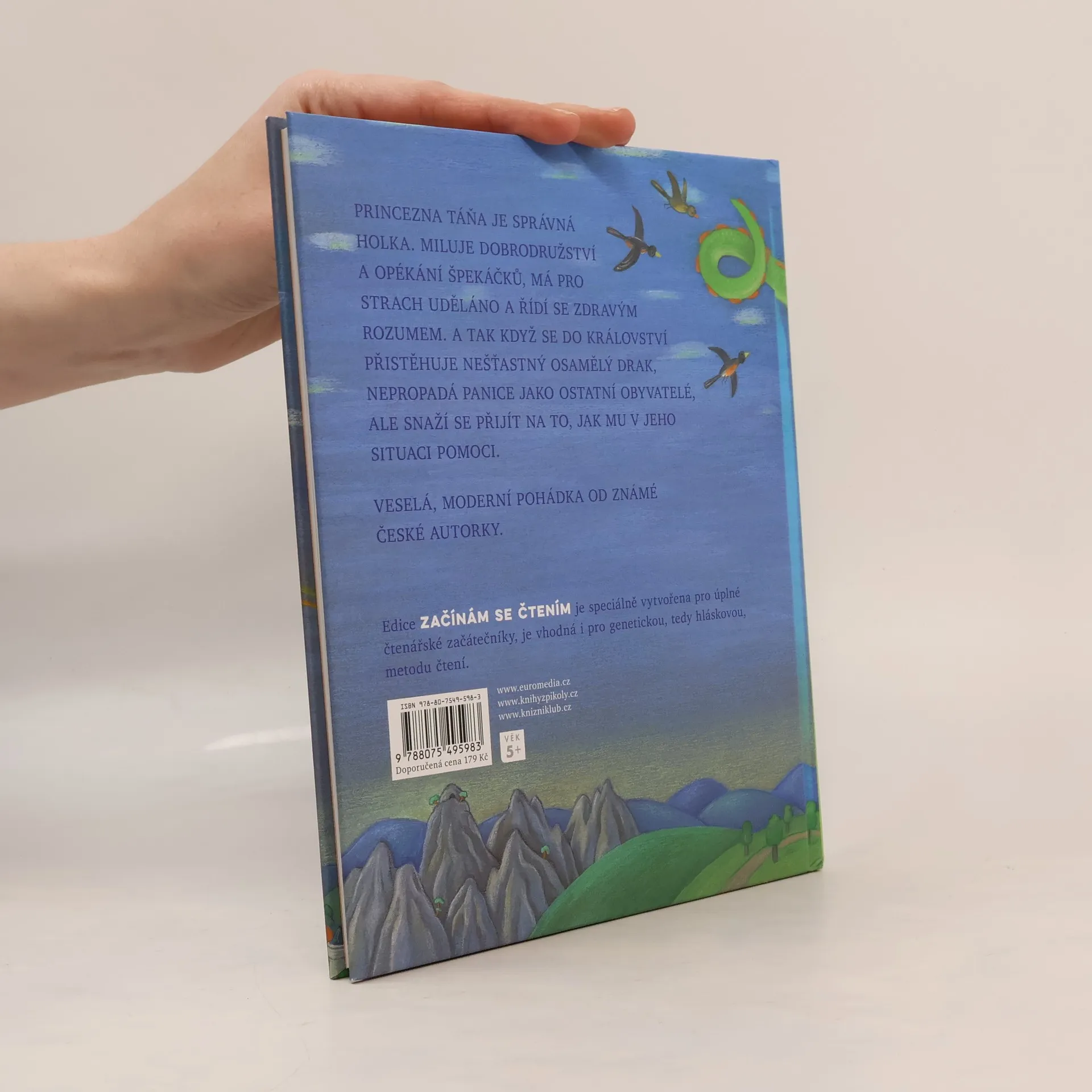 Veselá moderní pohádka od známé české autorky o neohrožené princezně, která vidí svět kolem sebe, jaký je, a při rozhodování se neřídí strachem a předsudky, ale svým zdravým rozumem. A tak když se do království přistěhuje nešťastný osamělý drak, nepropadá panice jako ostatní obyvatelé, ale snaží se přijít na to, jak mu v jeho situaci pomoci. Knížka je vhodná pro nácvik genetické metody prvního čtení, neboť je vysázená velkými písmeny.