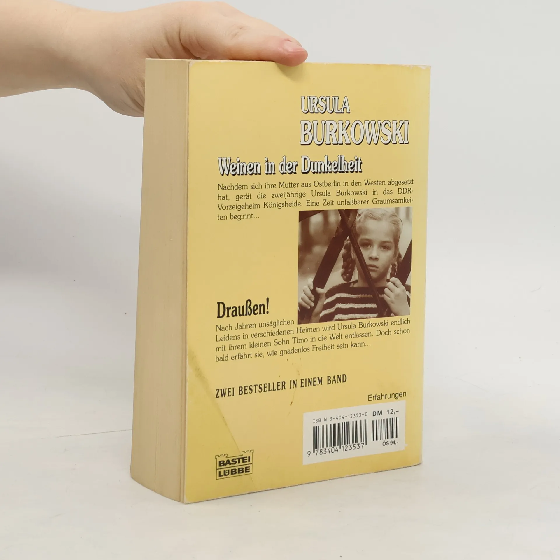 Winter 1953 in Ost-Berlin. Die zweijährige Ursula und ihre Geschwister entgehen nur knapp dem Tod. Von ihrer Mutter verlassen, die sich in den Westen abgesetzt hat, werden die Kinder ausgehungert von ihrem Großvater gefunden. Ursula wird, getrennt von den Schwestern, in dem Kinderheim „Königsheide“ untergebracht, einer Vorzeige-Einrichtung der DDR, in der die Kinder zu mustergültigen „sozialistischen Persönlichkeiten“ entwickelt werden sollen. Für das Mädchen beginnen damit Jahre des Leids … Ursula Burkowski beschreibt ergreifend und schlicht ihre Zeit im Kinderheim. Sie erzählt von den ersten Erfahrungen als elternloses kleines Mädchen bis hin zu den alltäglichen Problemen einer heranwachsenden jungen Frau, die langsam beginnt, innerlich aufzubegehren gegen die Unfreiheit, der sie ausgesetzt ist. Der Autorin gelingt es mit bewundernswerter Leichtigkeit, ihre Vergangenheit lebendig werden zu lassen und die Leser zu berühren. „Weinen in der Dunkelheit“, erstmals 1992 erschienen und stark beachtet von Medien und Politik, gilt als ein zentrales Buch zum Thema Heimerziehung. Die Neuausgabe enthält ein aktuelles Vorwort der Autorin, ein Grußwort der thüringischen Stasi-Unterlagen-Beauftragten Hildigund Neubert sowie ausgewählte Pressestimmen.