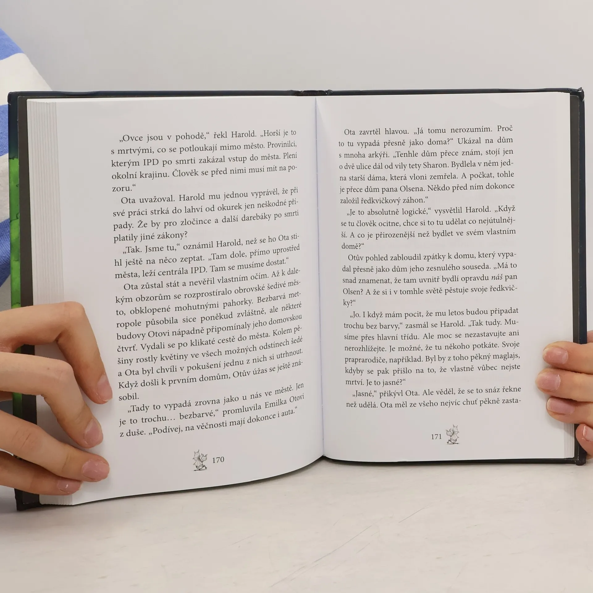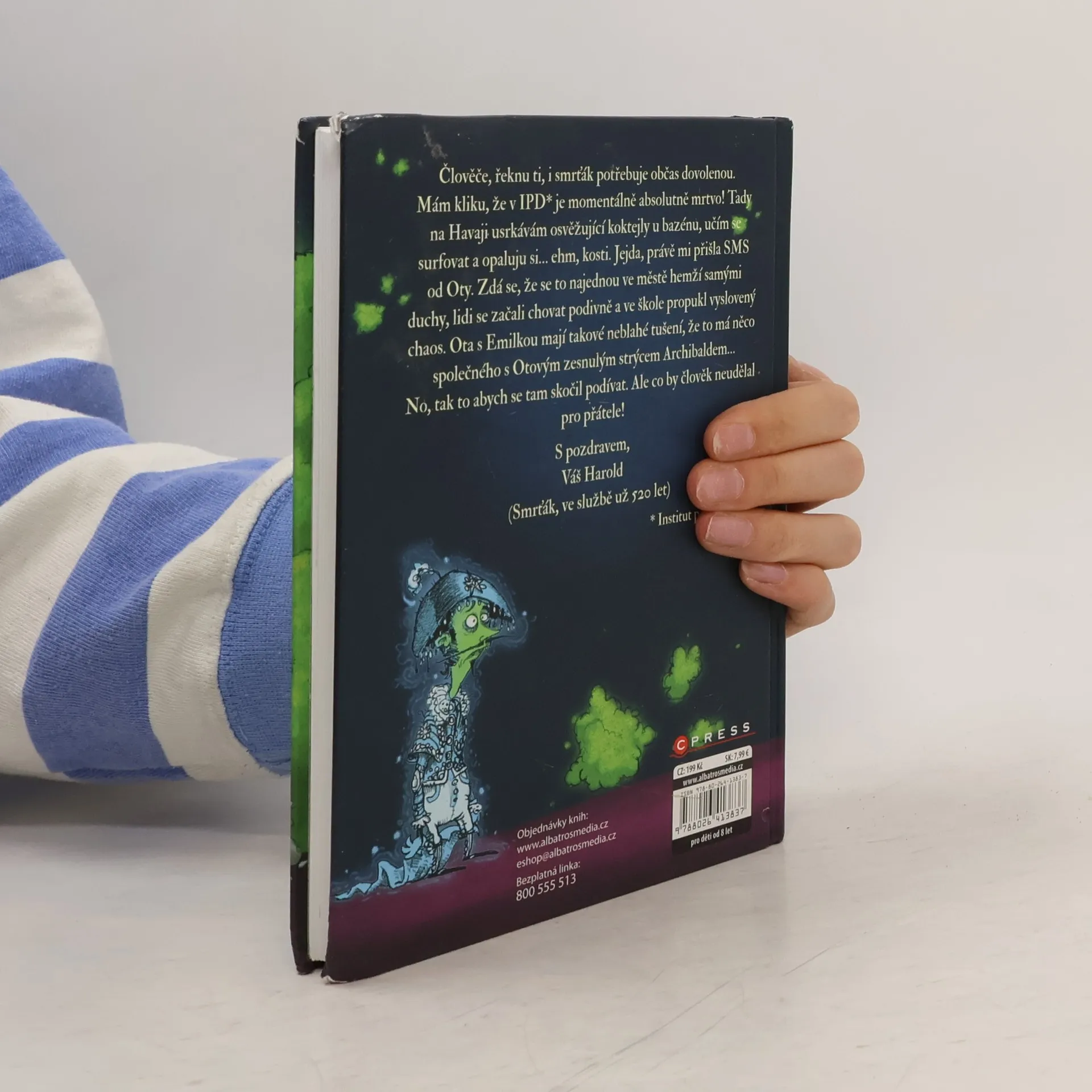 Humor a napínavé dobrodružství Člověče, řeknu ti, i smrťák občas potřebuje dovolenou. Mám kliku, že v práci je teď absolutně mrtvo! Tady na Havaji usrkávám osvěžující koktejly u bazénu, učím se surfovat a opaluju si… ehm, kosti. Jejda, právě mi přišla SMS od Oty. Zdá se, že se to najednou ve městě hemžíi duchy, lidi se začali chovat divně a ve škole propukl velký chaos. Ota s Emilkou mají tušení, že to má něco společného s Otovým strýcem Archibaldem… No, tak to abych se tam skočil podívat. Ale co by člověk neudělal pro přátele!