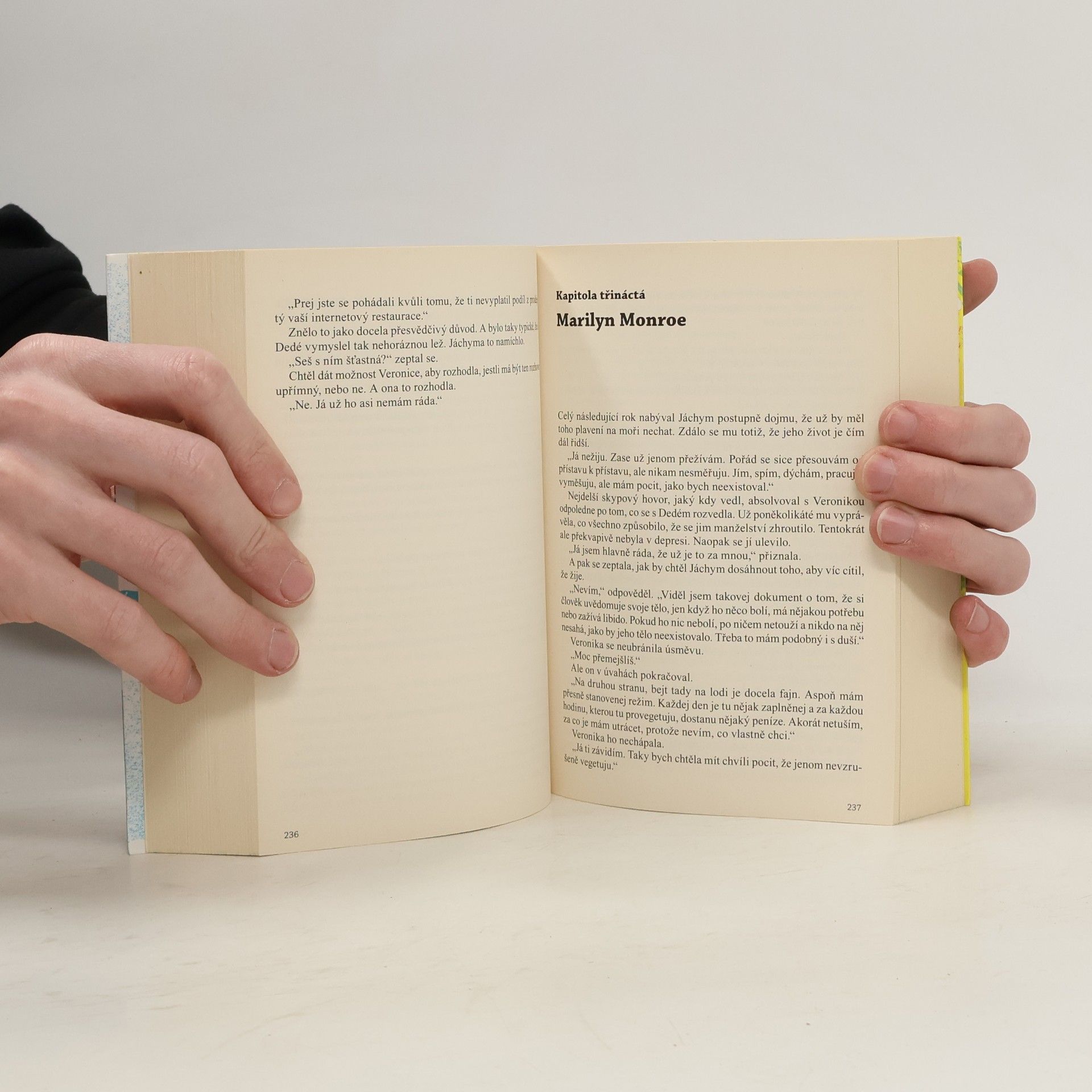 Nový dvojromán Patrika Hartla je možné začít číst z kterékoli strany. Vyberte si! Příběh sourozenců Veroniky a Jáchyma budete prožívat podle toho, který začátek zvolíte. Buďto do života skočíte jako Jáchym volným pádem z výšky čtyř tisíc metrů nebo se jako Veronika budete statečně prokousávat citovými nástrahami ode dne ke dni. Prožijete dva příběhy v jednom. Jako on a jako ona. Nebo v opačném pořadí, což bude překvapivě jiné, než byste očekávali... Můžete s nimi hledat štěstí, doufat, věřit, dělat chyby a napravovat je. Budete se o ně bát, fandit jim a zamilovávat se s nimi. A nejenom s nimi. Taky s Eliškou, Kubou, Dedém, Monikou, Viktorem, Amy, Kryštofem, Danou, Viki a Ondřejem. Protože štěstí a lásku hledá každý. I když to zní jako fráze.
