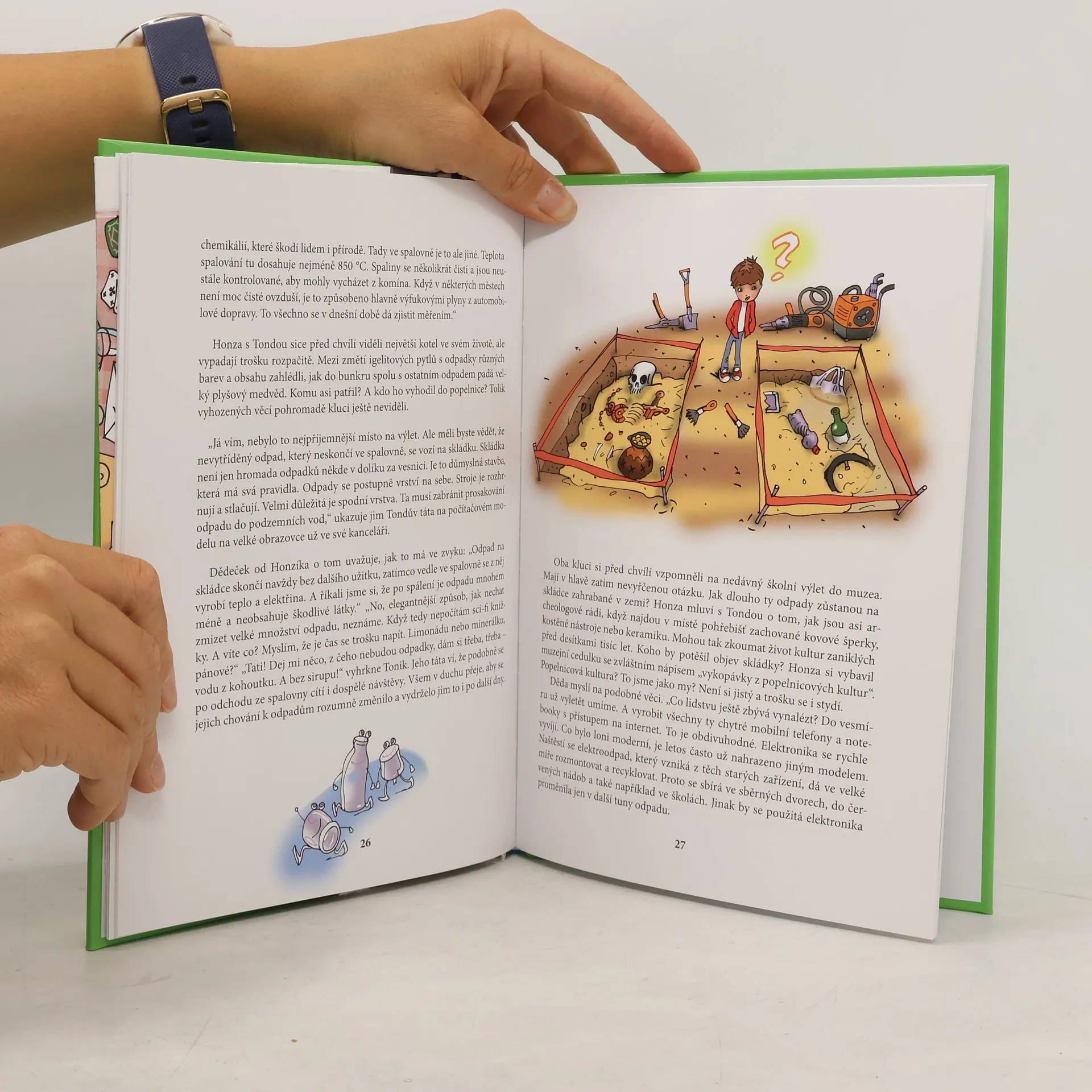 Honzík rád navštěvuje babičku a dědečka, kteří ho vlídně provázejí při cestách za poznáním zajímavostí v okolí. Tentokrát se Honzík spolu s kamarádem Tondou snaží zjistit, kde se bere tolik odpadu a zda je možné ho znovu účelně využít. Chlapci se ptají, kam se odpad ukládá a proč ho třídíme, co se stane s odpadky odhozenými v přírodě. Honzík se podívá do sběrného dvora, třídírny odpadů, s prarodiči se stará o kompost na zahradě a naučí se, že přírodě nejvíc pomůže, když s ničím nebude plýtvat. Vysvětlete malým průzkumníkům, jak přírodu nazahltit odpadem.