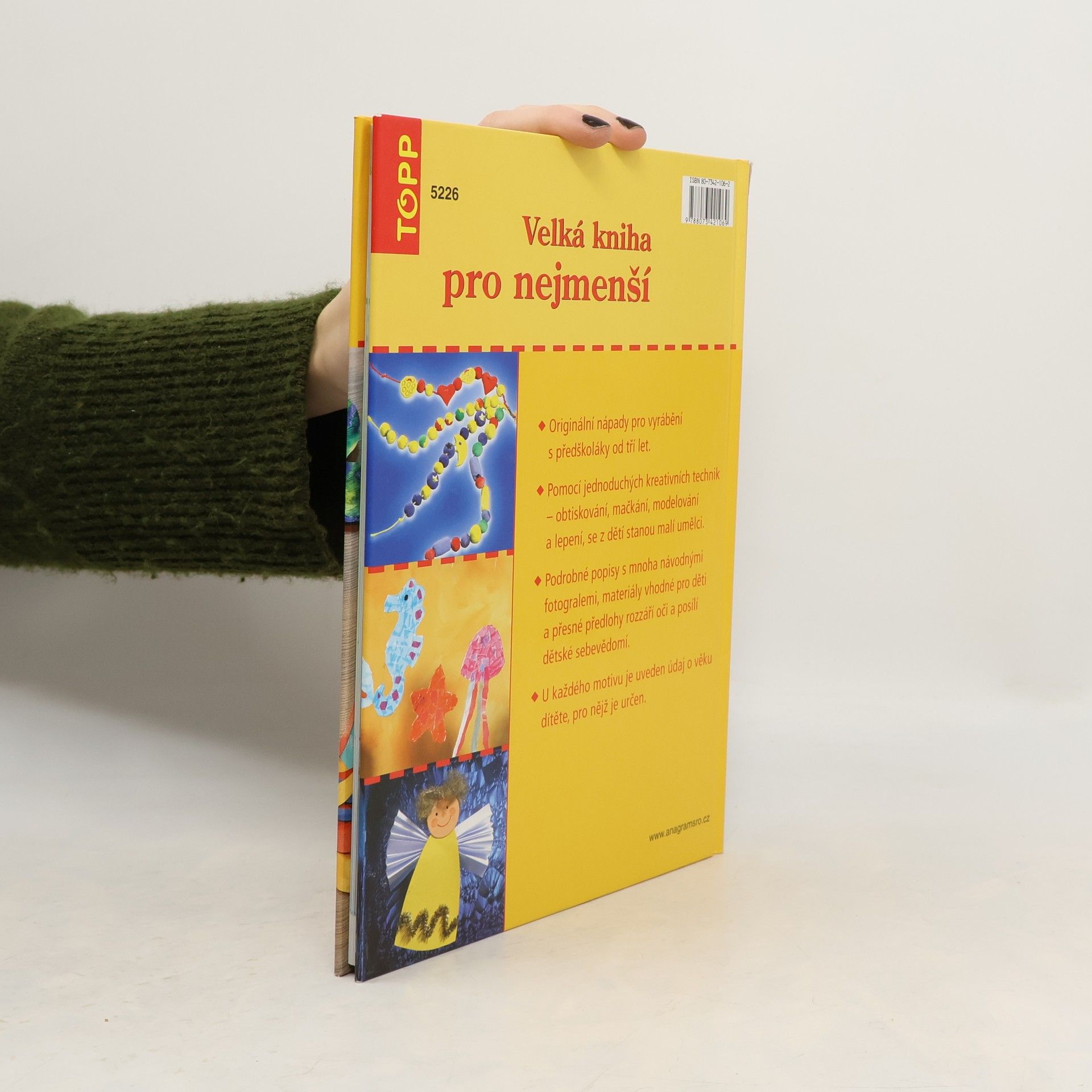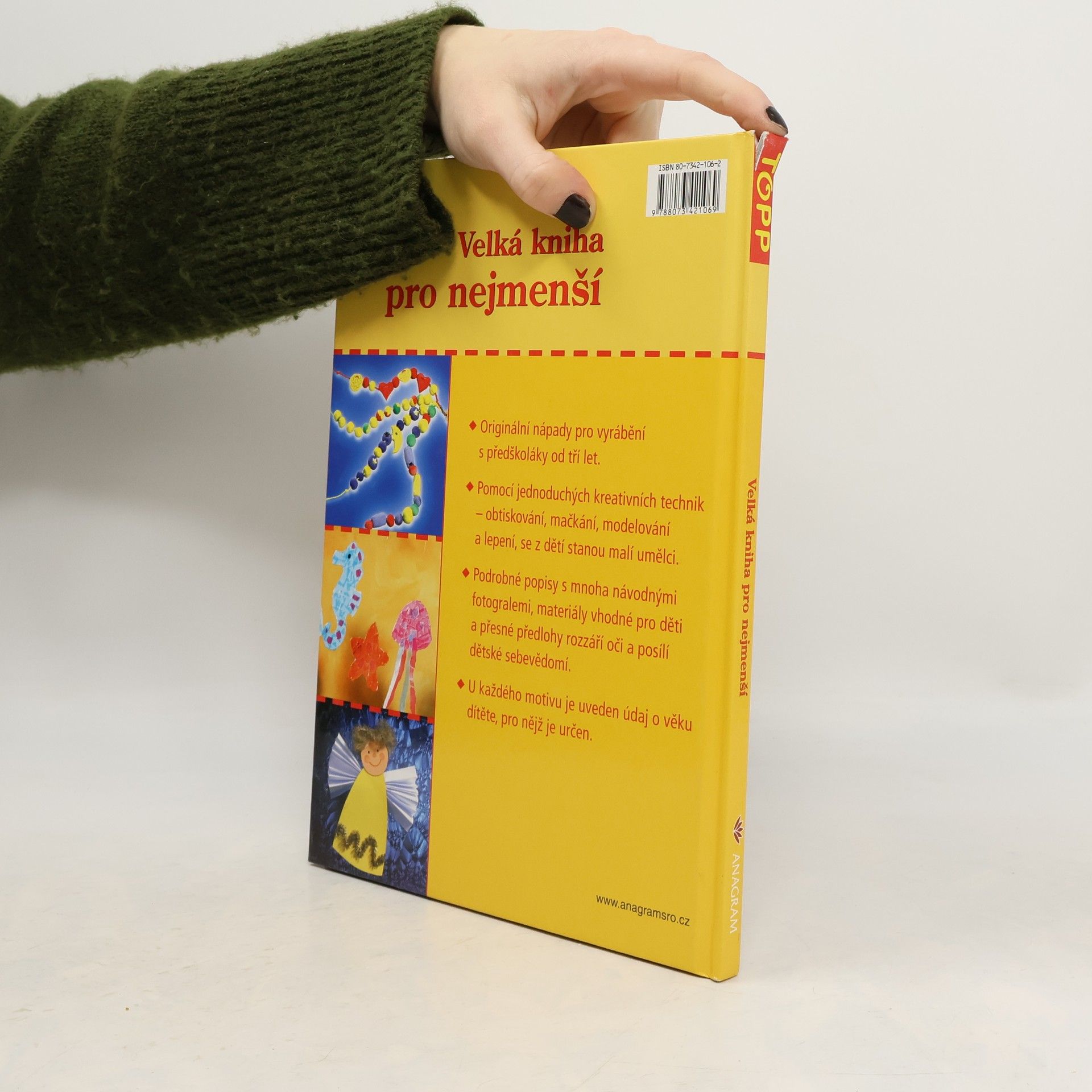 Originální nápady pro vyrábění s předškoláky od tří let. Pomocí jednoduchých kreativních technik - obtiskování, mačkání, modelování a lepení, se z dětí stanou malí umělci. Podrobné popisy s mnoha návodnými fotografiemi, materiály vhodné pro děti a přesné předlohy rozzáří oči a posílí dětské sebevědomí. U každého motivu je uveden údaj o věku dítěte, pro nějž je určen.