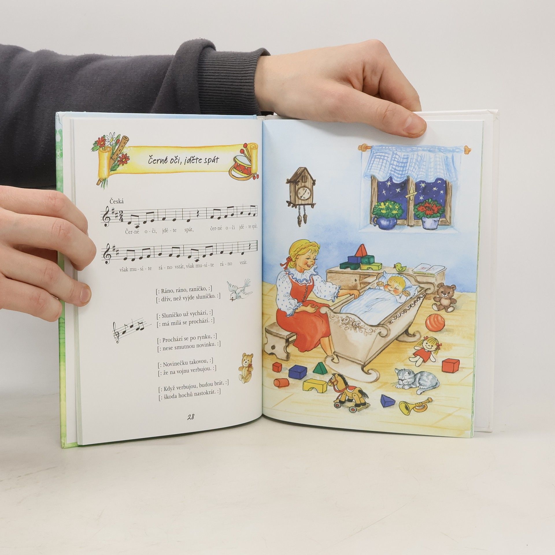 Sbírka 25 oblíbených lidových písniček s notami a veselými obrázky Vladimíry Vopičkové. Písničky jsou určeny těm nejmenším. Mají jim pomoci zapamatovat si a procvičit melodie i slova těch nejznámějších – Šla Nanynka do zelí, Cib, cib, cibulenka, Pásla ovečky nebo Červená, modrá fiala. Vaše děti si knížku zamilují nejen kvůli ilustracím, ale i díky malému formátu vhodnému pro dětské ručičky a praktickým na cesty.